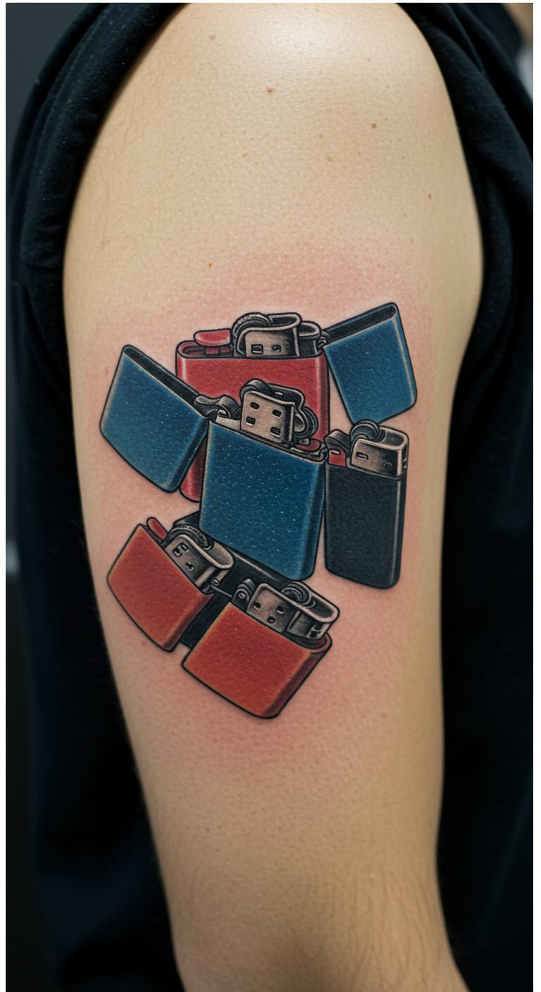 Let flames flow in an abstract way for a creative spin. It adds movement to the basic lighter. Experiment with freehand drawings on paper first. Choose your shoulder for a semi-hidden spot. Find deals online for tattoos under $90. Draw abstract patterns at home using colored pencils to preview it. This approach cuts costs and lets you personalize. Clean the tattoo with mild soap daily. The result is a unique piece that feels artistic and light.