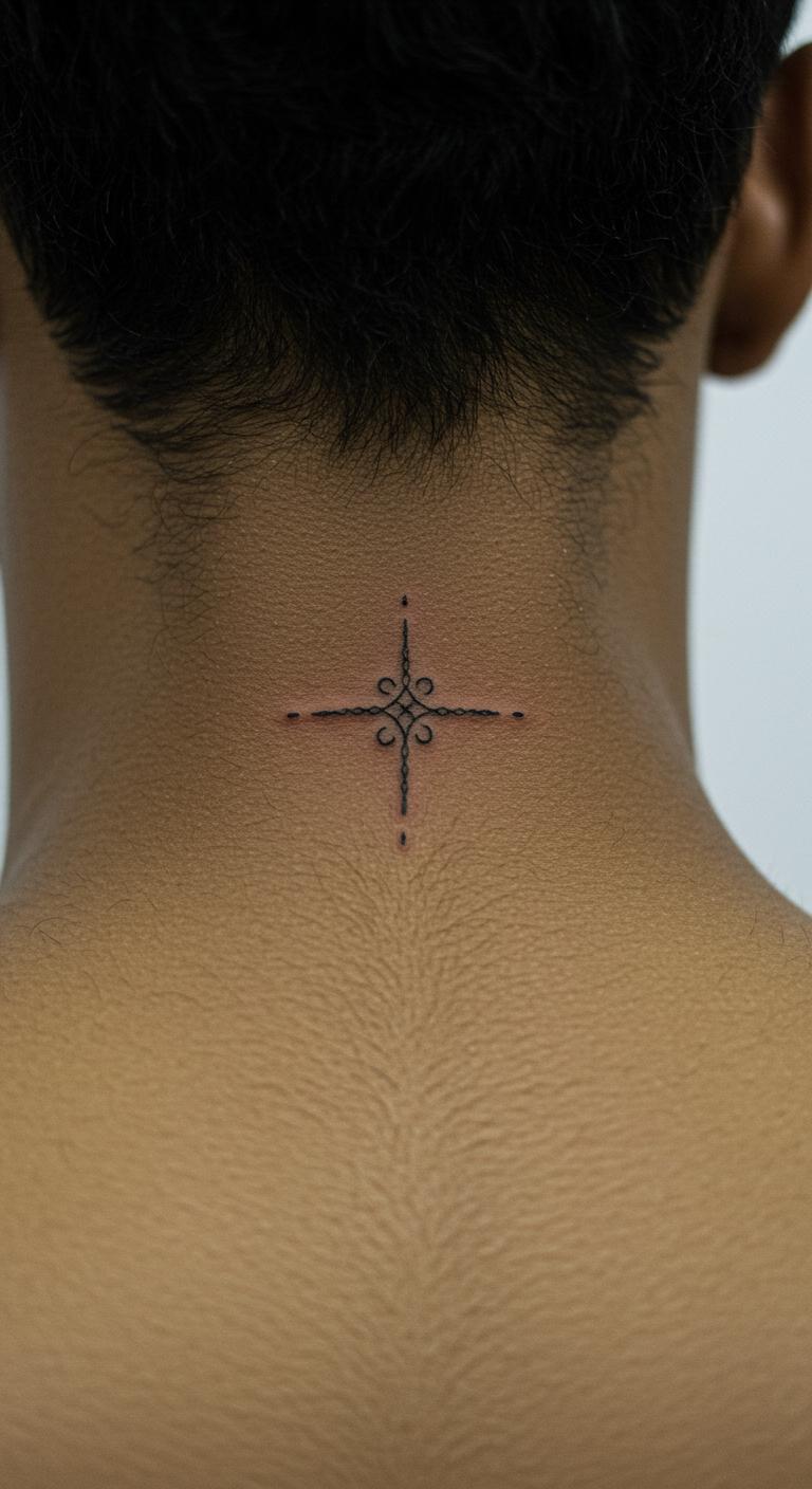 Hide it on the back of your neck for surprise. The design peeks out nicely. Plan with a back mirror. This spot is $50 and discreet. Draw on paper and hold it up. DIY makes it personal and cheap. Tie hair up for care. It adds mystery to your appearance.