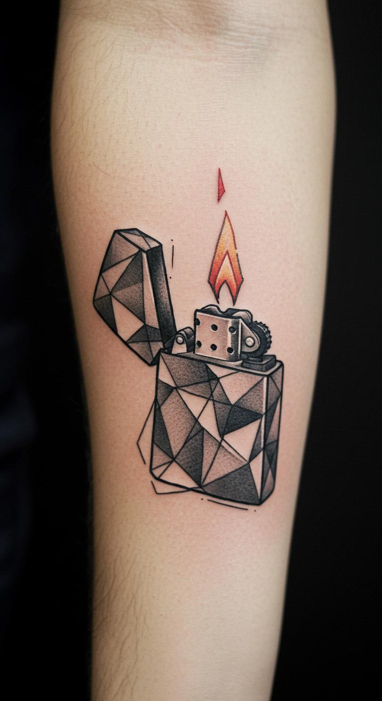 Mix shapes into your lighter for a modern edge. Triangles and squares make it structured and cool. Use graph paper to plan the geometry yourself. Put it on your forearm for balance. Budget artists often do these for about $70, so shop around. Create a template at home with a ruler and pencil for easy customization. This DIY method keeps things affordable and precise. Moisturize the area with everyday cream afterward. The design stands out yet stays simple, perfect for daily wear.