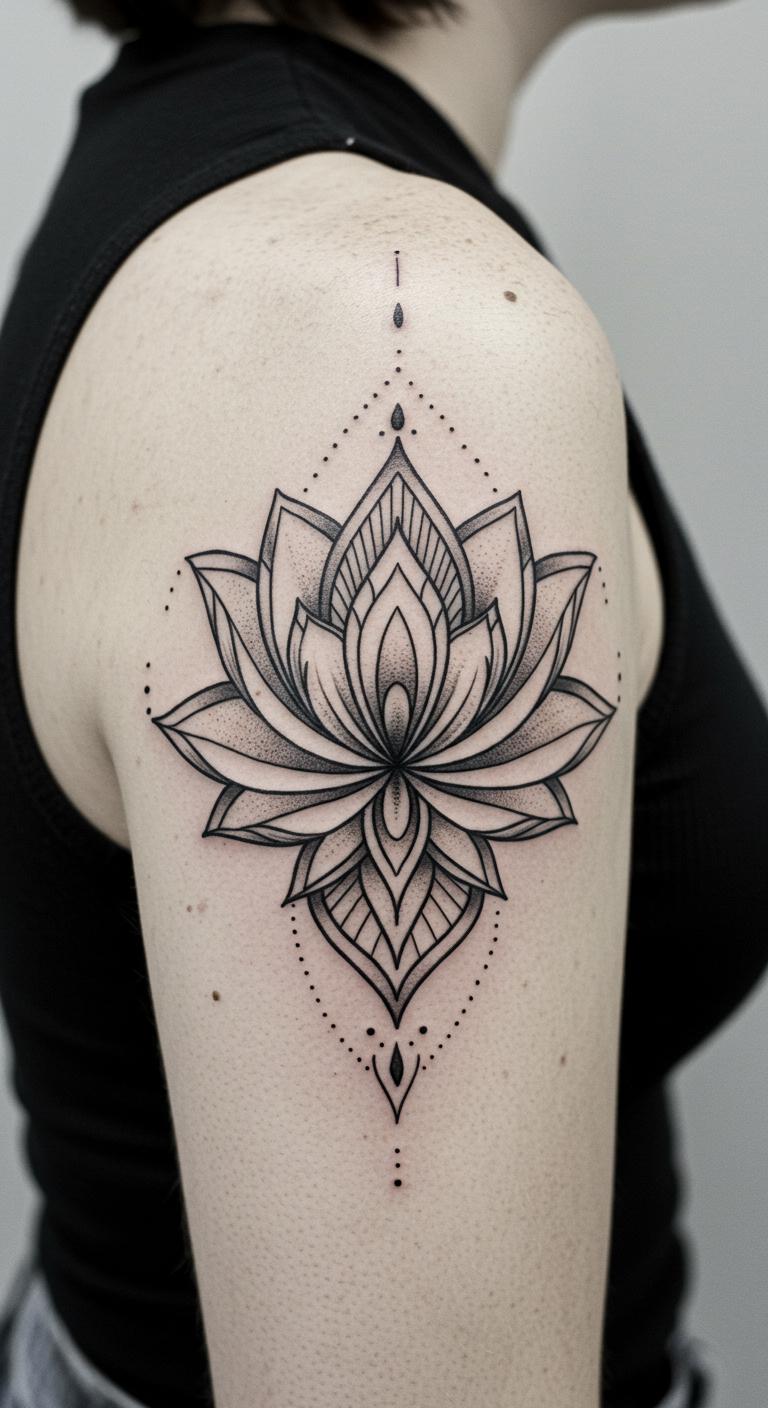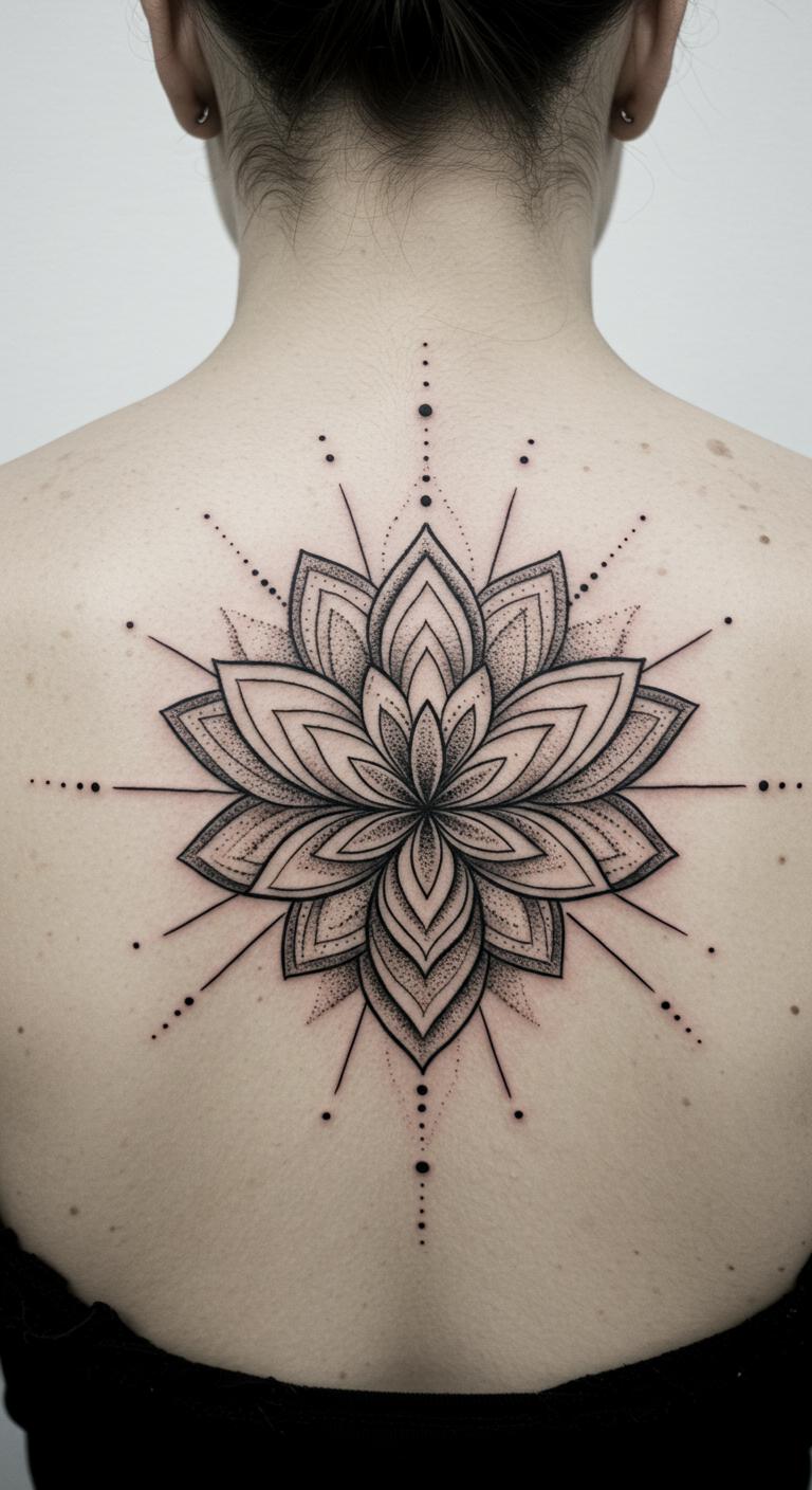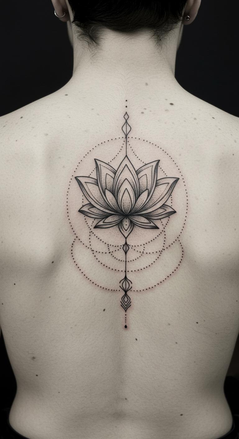 A symmetrical mandala lotus adds balance and calm to your back. Begin by tracing a circle on paper with a pencil. Fill in lotus petals evenly for practice. Artists in your area might offer this for around $100. Choose your back for a larger canvas that stays private. Combine it with daily yoga for a spiritual vibe. Use free apps to design your own version at home. Keep aftercare simple with unscented lotion. This style works well for first-timers. Experiment with mirror drawings to get the symmetry right. In the end, it becomes a personal focal point.