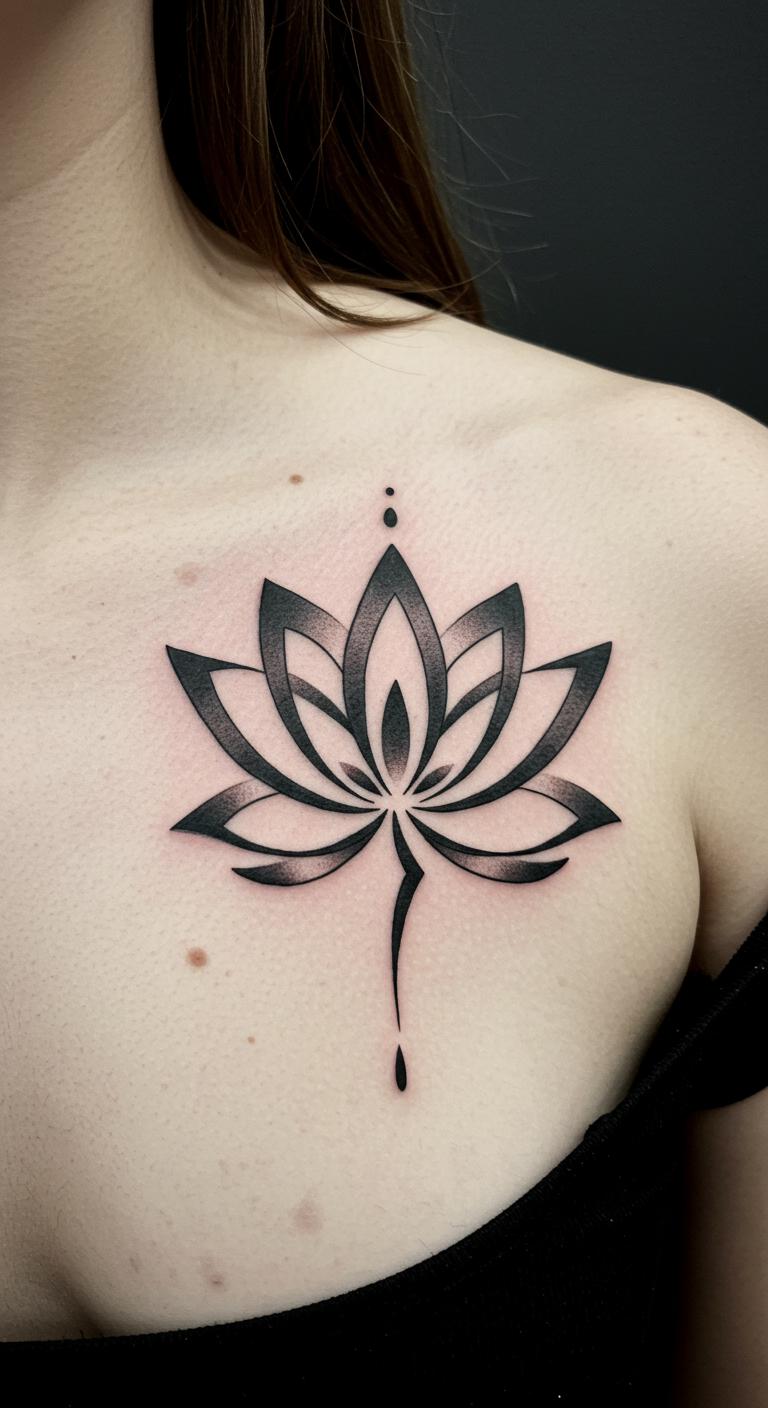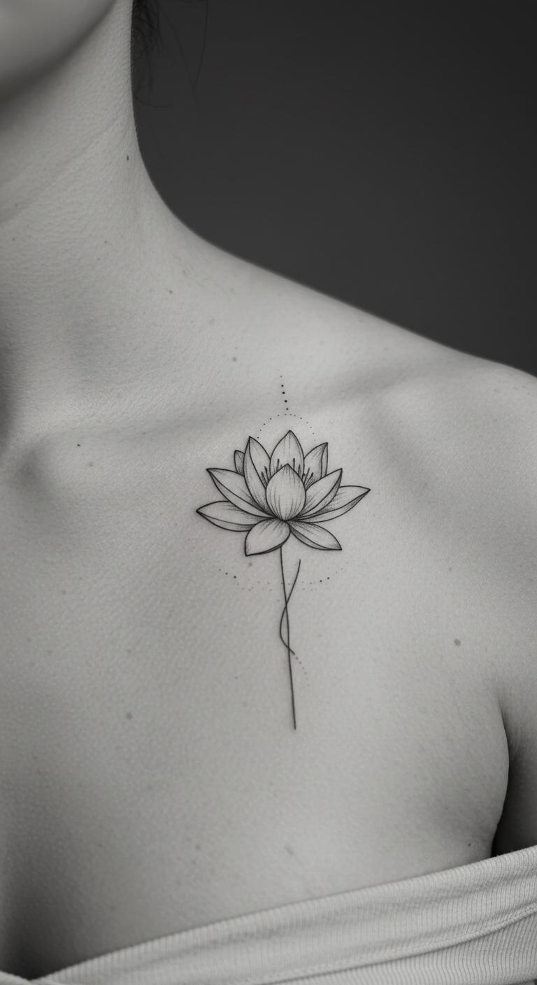 An abstract lotus shape on your collarbone offers artistic freedom. Sketch abstract forms with a pencil on notebook paper first. No special tools needed. Studios may charge around $70 for this. Put it on your collarbone for a discreet option. Match it with necklaces for added style. Find abstract art online to inspire your design. Use aloe vera for simple aftercare. It’s perfect for creative types. Draw on your arm with washable ink to test. This tattoo evolves with your story.
