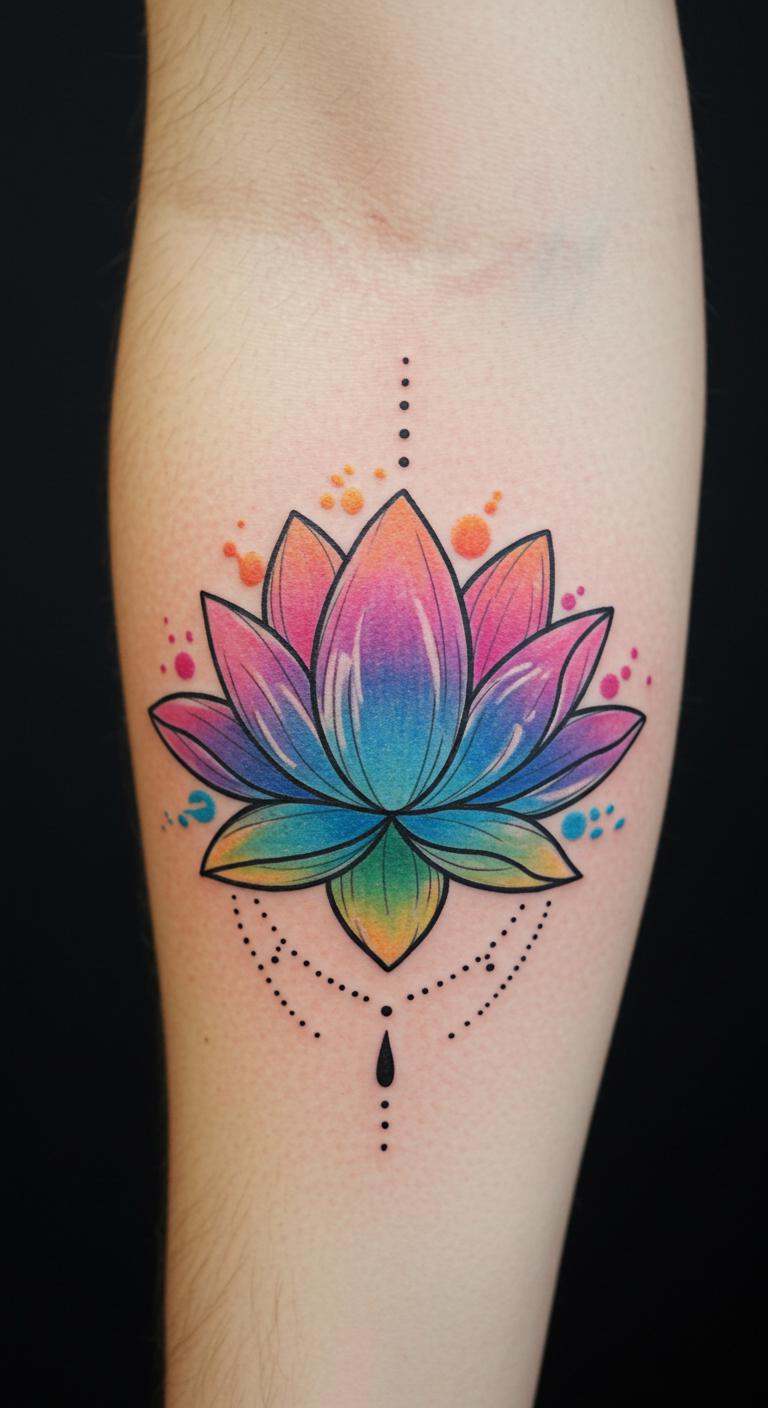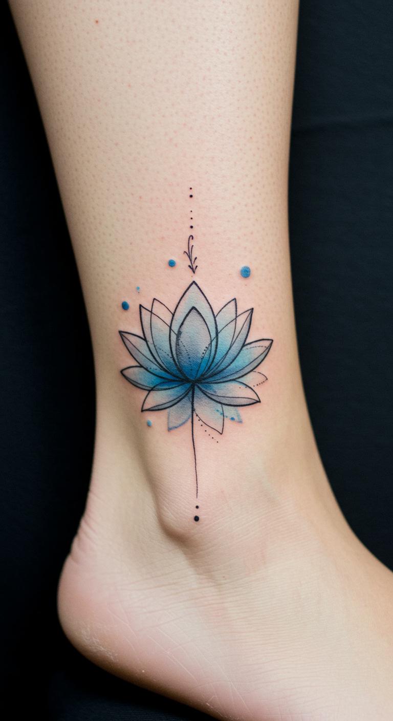 A delicate watercolor lotus brings a soft touch to your ankle. Grab watercolors and paper to test ideas yourself. It takes minutes and zero cost. Artists charge about $80 for this style. Opt for your ankle to keep it subtle yet visible. Pair it with light clothing for summer flair. Download free templates online to sketch variations. Apply a basic bandage post-tattoo for protection. This design suits all skin types. Try fabric markers on fabric first for a fun preview. You’ll appreciate its whimsical feel over time.