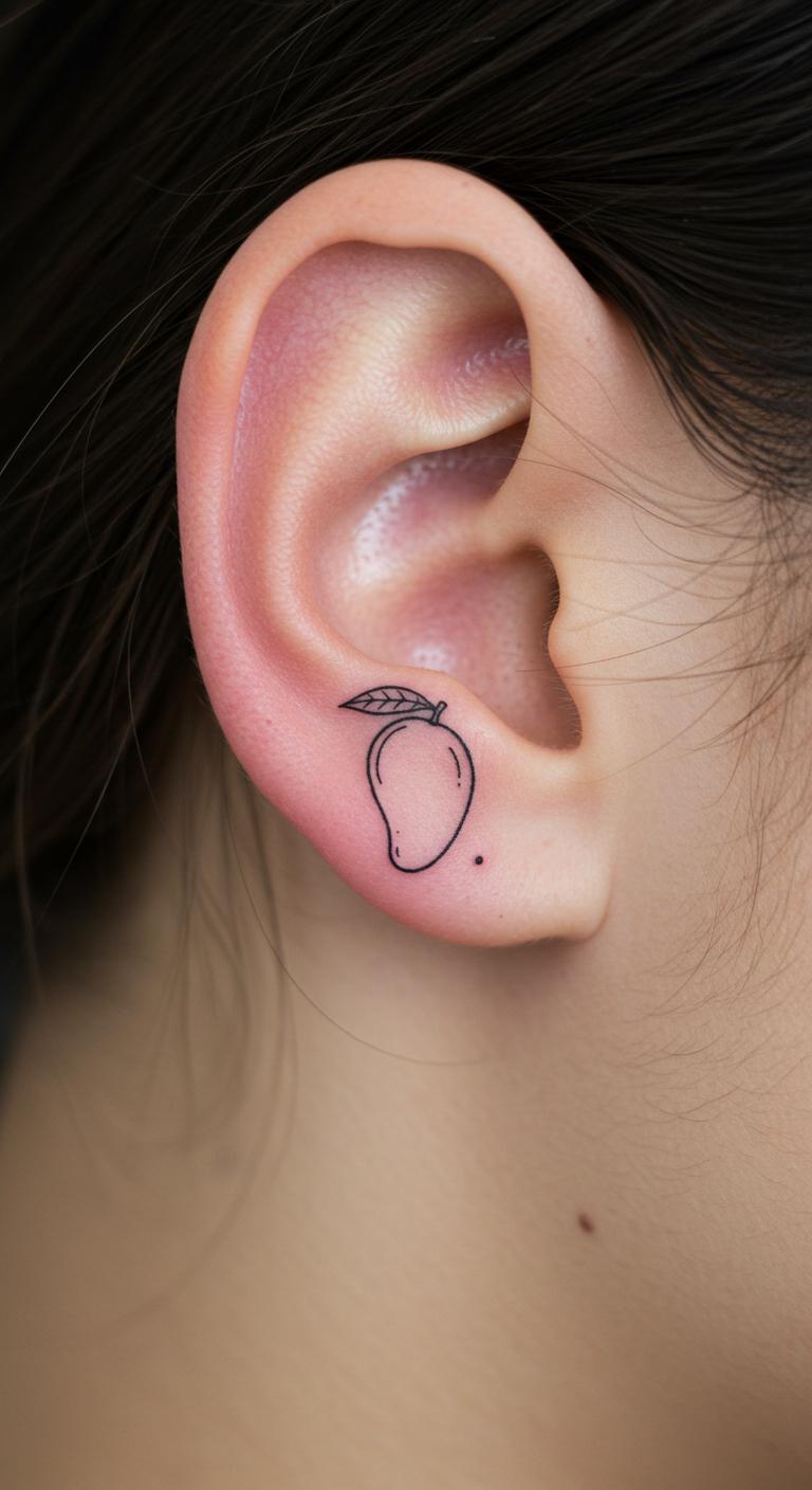 Opt for a very small mango shape behind your ear.