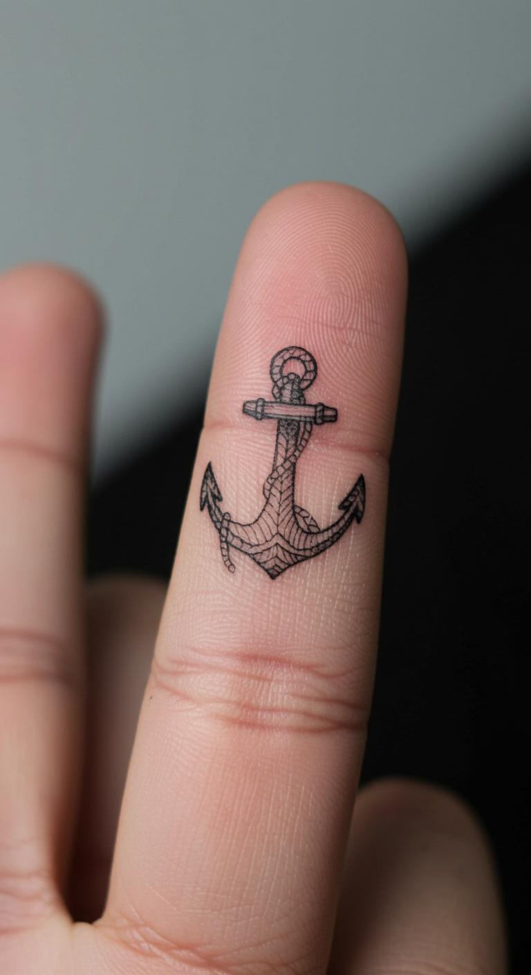 Geometric anchors use shapes like triangles for a modern edge. Draw one at home with a ruler and pencil. Add dots for texture—use a dot sticker as a guide. Place it on your finger for a discreet look. Costs stay low, around $30 to $60. Pair it with everyday jewelry to test the feel. Shading adds depth but keep it minimal. Heal fast by keeping it moist with lotion from your cabinet. This design fits active folks. Experiment with paper cutouts before deciding.