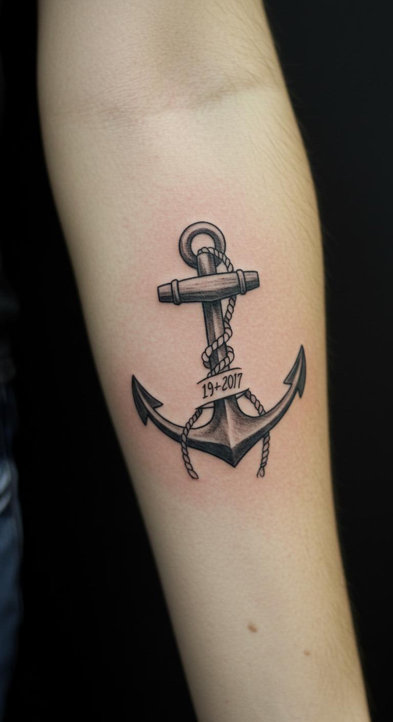 Think of a basic anchor with straight lines and no extra flair. This design keeps things straightforward and elegant. Start with a sketch on paper to see how it looks. Use a fine-tip pen for your DIY trial—it’s cheap and fun. Pick a spot like your wrist for easy viewing. Artists charge less for simple ink, often under $50 for small ones. Get a friend to help draw it first. Bold lines make it pop. Try black ink only to keep costs down. Healing takes a week; just clean it gently. This style works for anyone new to tattoos.