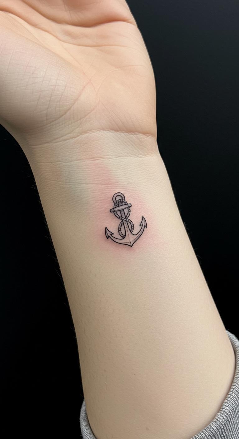 A small wrist anchor fits daily wear with ease. Draw it on with a ballpoint pen for practice. Use a watch band to mark the spot. This size hurts less and costs about $20. Bold the center line in your sketch. Heal in days with basic cream. It’s great for first-timers. Add a personal touch like a dot. Check online videos for quick tips.