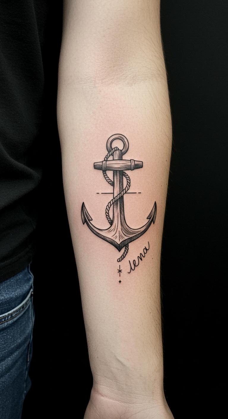 Add a name to your forearm anchor for memory. Write it out on paper first. Use a friend for feedback. This spot shows off easily. Expect $50 total. Bold the name part. Clean with mild soap. It’s personal and strong. Test with a temporary draw.