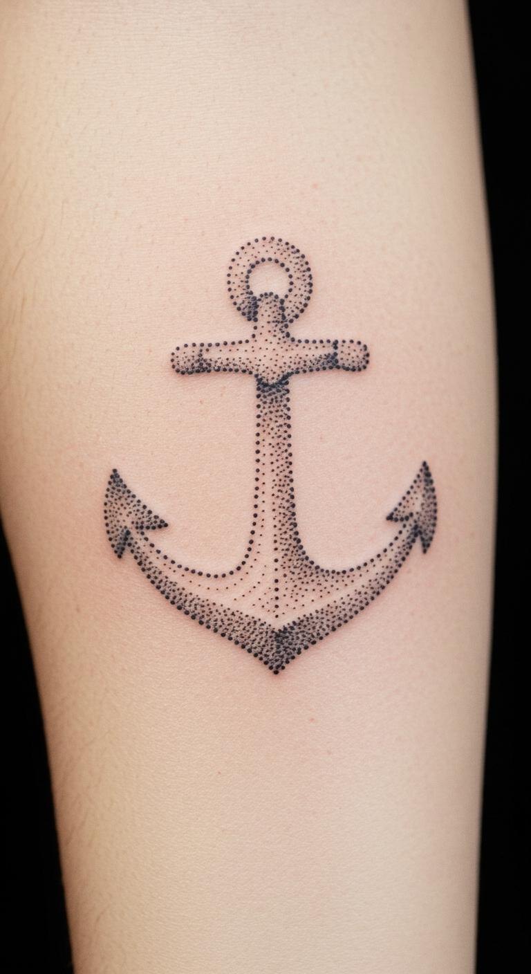 Dotted lines give a unique twist to anchors. Dot paper with a pen for practice. Arrange dots evenly. Place on arm for visibility. Prices are $40. Make it playful. Heal by avoiding water. This style stands out. Use stickers for a trial.