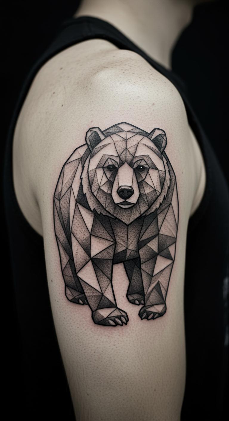 Geometric bears turn the classic animal into a modern masterpiece with triangles and squares. This style adds a structured twist to the bear’s strength, making it feel fresh and artistic. Draw inspiration from graph paper to plan your own. Save money by sketching designs at home using basic drawing tools. Opt for a forearm spot to show it off casually. Expect to spend $80 to $150 for a small piece. Heal it with affordable lotions from your local store. Combine it with daily exercises for a personal empowerment routine. Geometric patterns allow easy customization. Practice with stencils and markers as a fun DIY step before committing.
