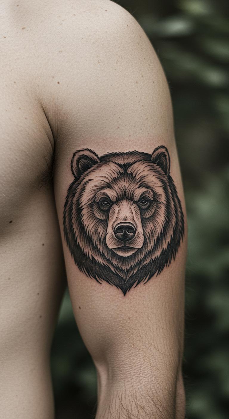Negative space in a bear profile creates depth with what’s not inked, focusing on the animal’s wise expression. This approach makes your tattoo feel airy and profound. Grab a pencil and paper to outline your version. Look for affordable online tutorials to guide your choices. Choose your upper arm for a balance of visibility. Budget around $60 to $120. Maintain it with gentle washes using soap you already have. Use it as a reminder during meditation sessions. Negative space adds emotion without extra ink. Test it with body paint for a simple DIY experience.