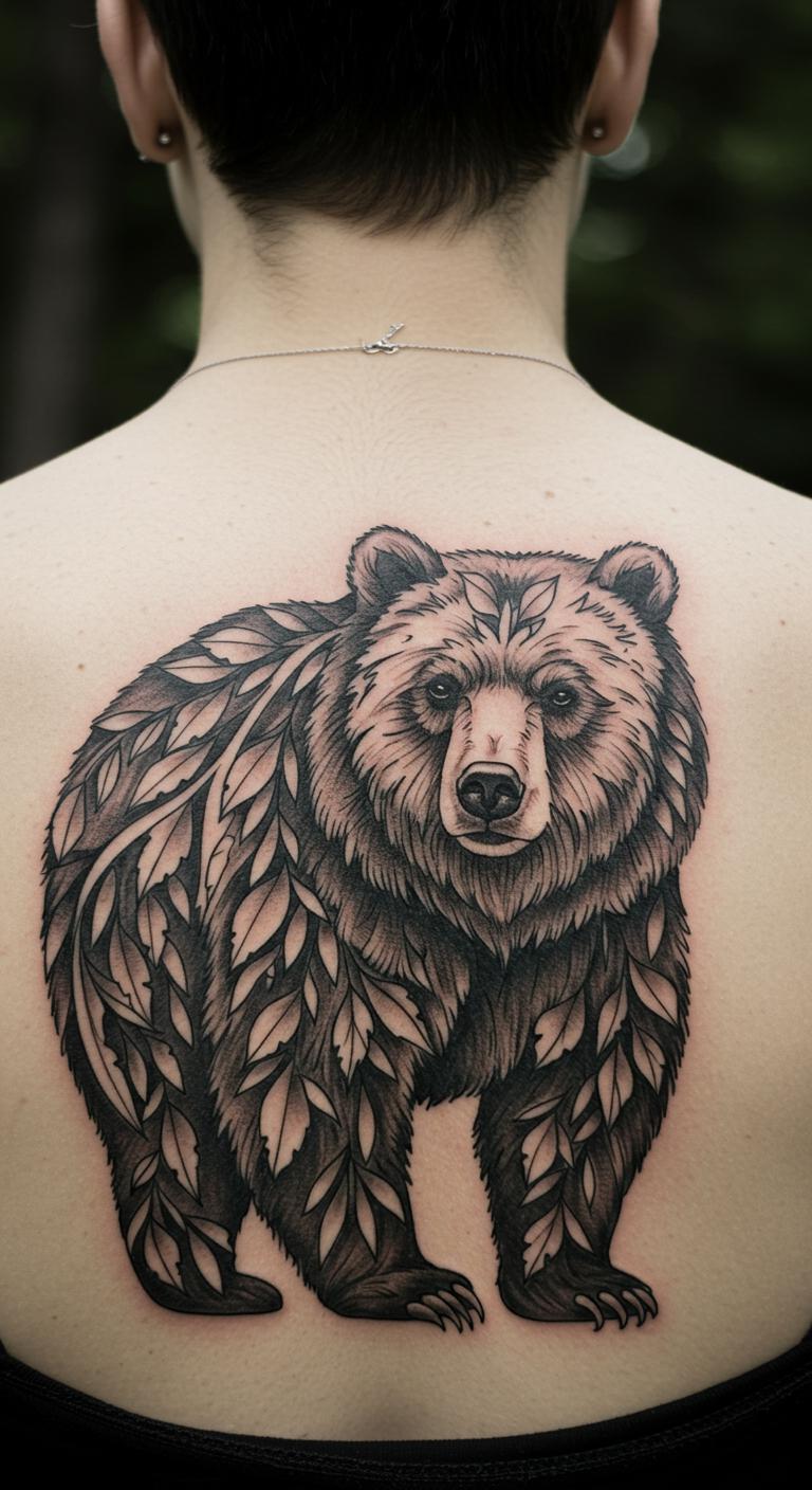 Nature bears add leaves for an outdoor connection using simple lines. Hike for ideas. Use free nature apps. Place on your back. Budget $60 to $130. Protect with nature trips. Appreciate wildlife through it. Themed tattoos ground you. Draw with leaf rubbings for DIY.