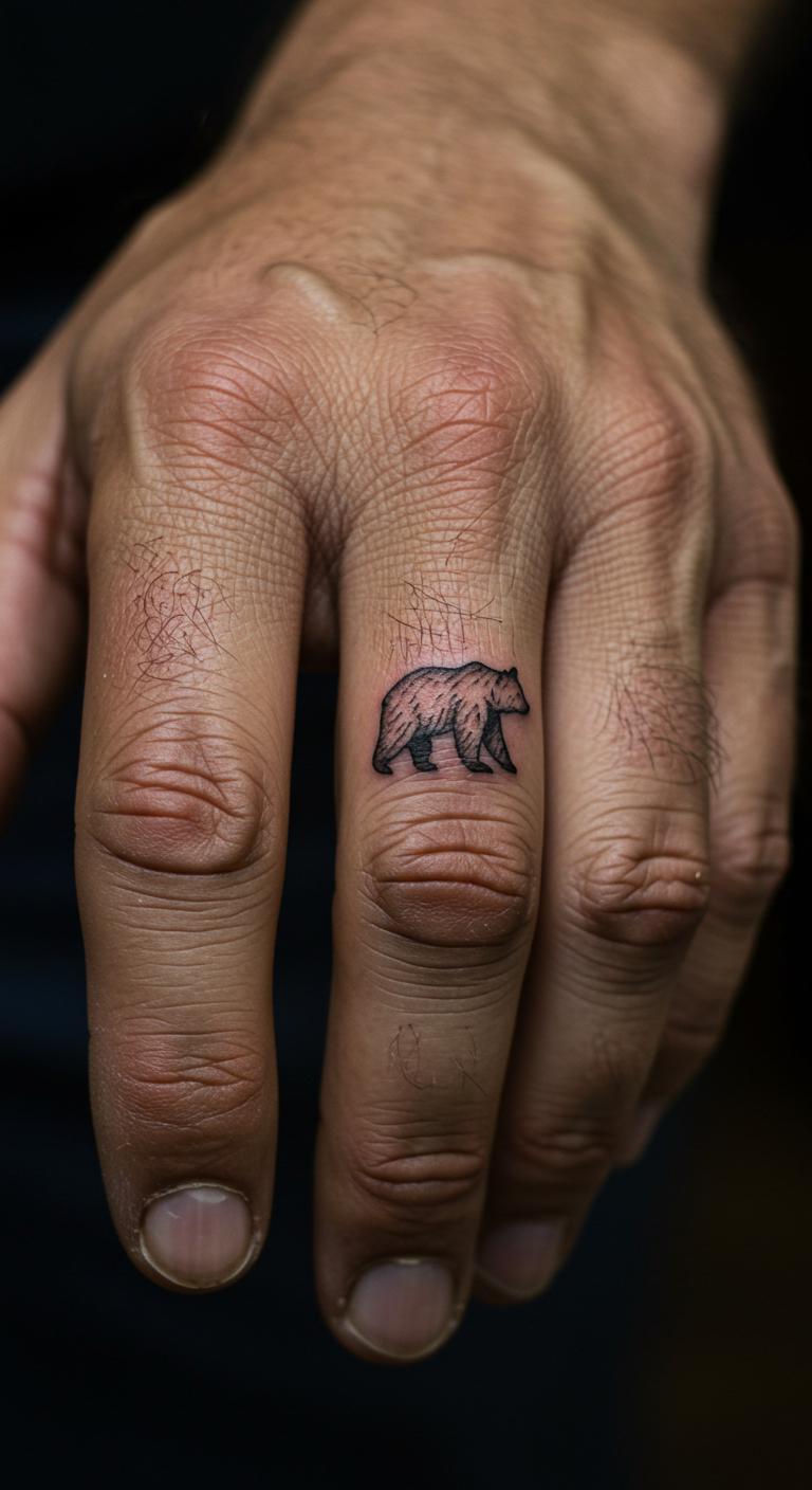 Small bears represent resilience in a tiny package. Plan on a phone app. Seek cheap small-ink artists. Finger placement for constant view. Costs under $40. Heal with finger covers. Overcome challenges with it. Small designs pack impact. Use nail art for DIY.