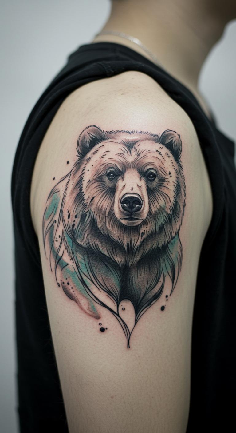Watercolor bears use blended lines for a painted look. Experiment with watercolors yourself. Look for deals on colored ink. Shoulder for display. Costs $100 to $200. Use safe washes. Appreciate art with it. Effect tattoos add flow. Try watercolor paper for DIY.