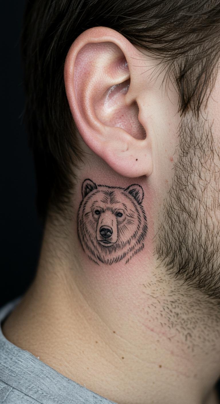 Behind-the-ear bears are subtle symbols, hidden yet powerful with minimal lines. Ideal for private meanings. Use a mirror to sketch possibilities. Find deals at walk-in shops. Hide it under hair if needed. Budget $30 to $70. Protect with cotton pads. Touch it for quiet reflection. Discreet designs fit any routine. Test with face paints for DIY.