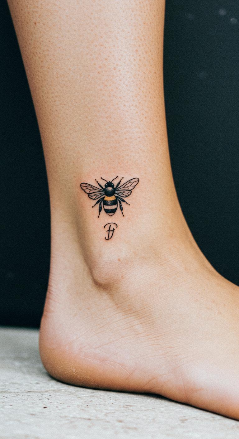 Weave in your initials beside the bee. It makes it uniquely yours. Try the ankle for visibility. This adds a story. Budget at $35 or so. DIY: Write with a fine pen on paper. Practice runs. Use barrier cream post-tattoo. Focus on dedication. Choose font styles.
