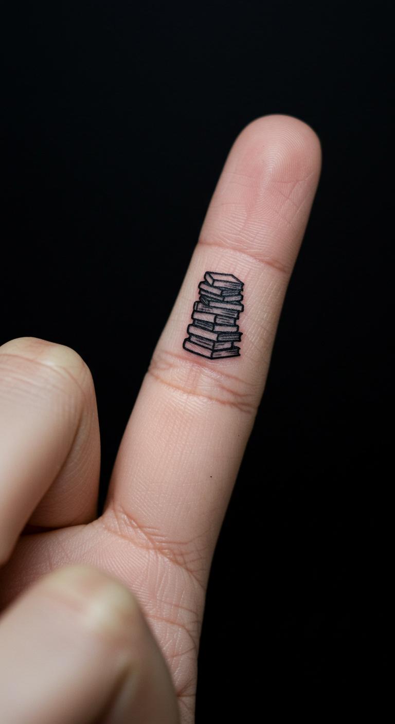 A stack of tiny books builds a library. It’s compact and cute. Draw mini books on your finger. Apps stack them perfectly. This runs under $40. Finger spot keeps it handy. Tiny size means fast healing. Use markers for quick tests. This tattoo stacks your loves.