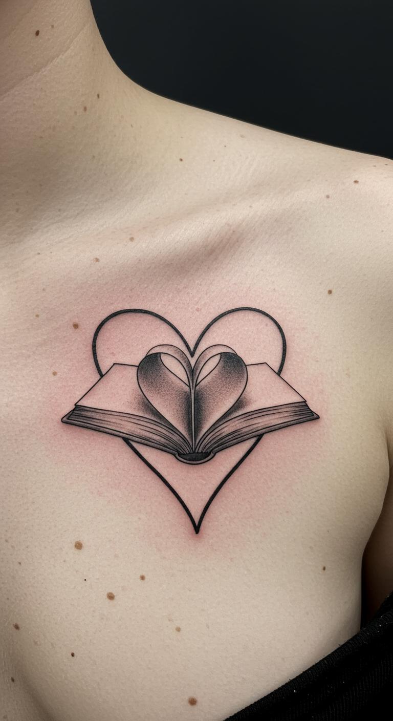 Shape a book like a heart for love. It’s heartfelt and direct. Sketch the heart-book form. Free apps hearten the design. About $55 for this symbol. Chest placement hits home. The symbol aids emotional healing. Temporary versions cost little. This tattoo hearts your passion.