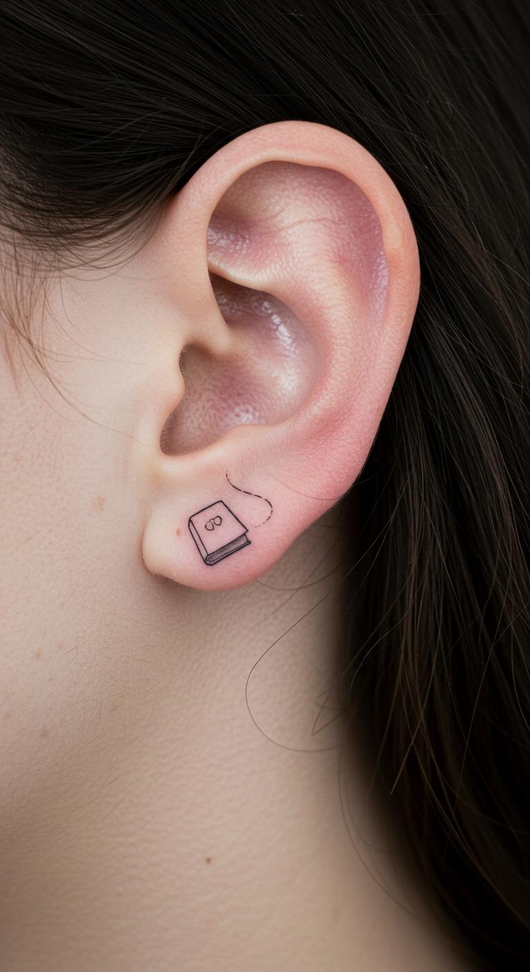 Tuck a book behind your ear. It’s sneaky and sweet. Draw it on your ear’s curve. Digital tools ear it up. About $40 for hidden ink. Ear spot keeps it secret. Tiny design heals quick. Earring stickers mimic it free. This tattoo ideas your whispers.