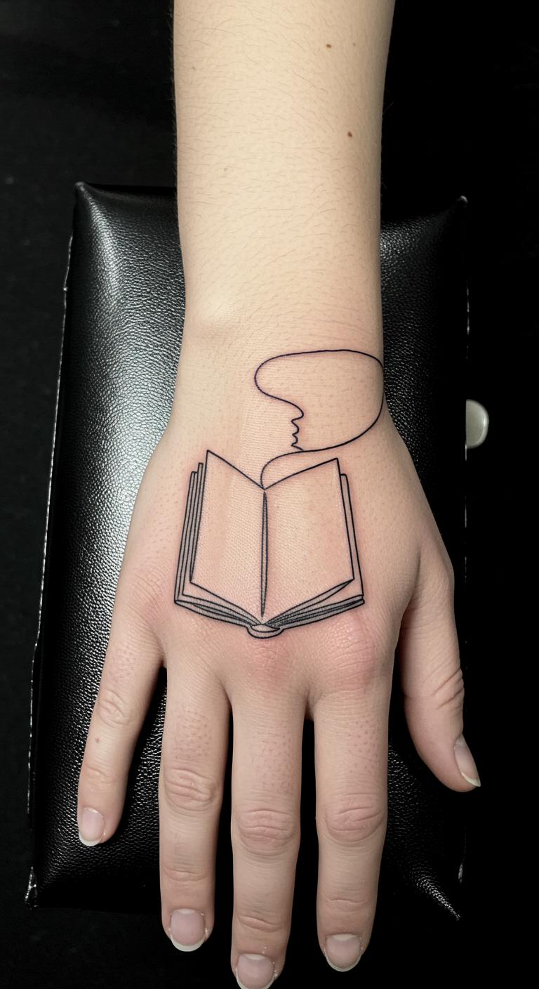 One continuous line forms a book shape. It’s modern and fluid. Grab a marker and trace it on your skin. Free drawing apps offer quick edits. Shops charge around $50 for this style. Opt for your hand to show it off. The line stays neat and heals fast. Henna lets you test at no big cost. Keep it plain for timeless charm. This tattoo flows with your life.
