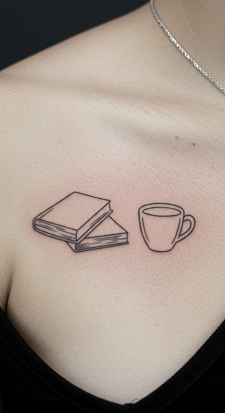 Books next to a coffee cup blend habits. It’s a nod to cozy reads. Draw both on paper in minutes. Use phone apps for layout ideas. This might run $60 at a local spot. Place it on your shoulder for easy cover. Small size means quick recovery. Temporary stickers help you preview. Pair it with your routine for extra meaning.