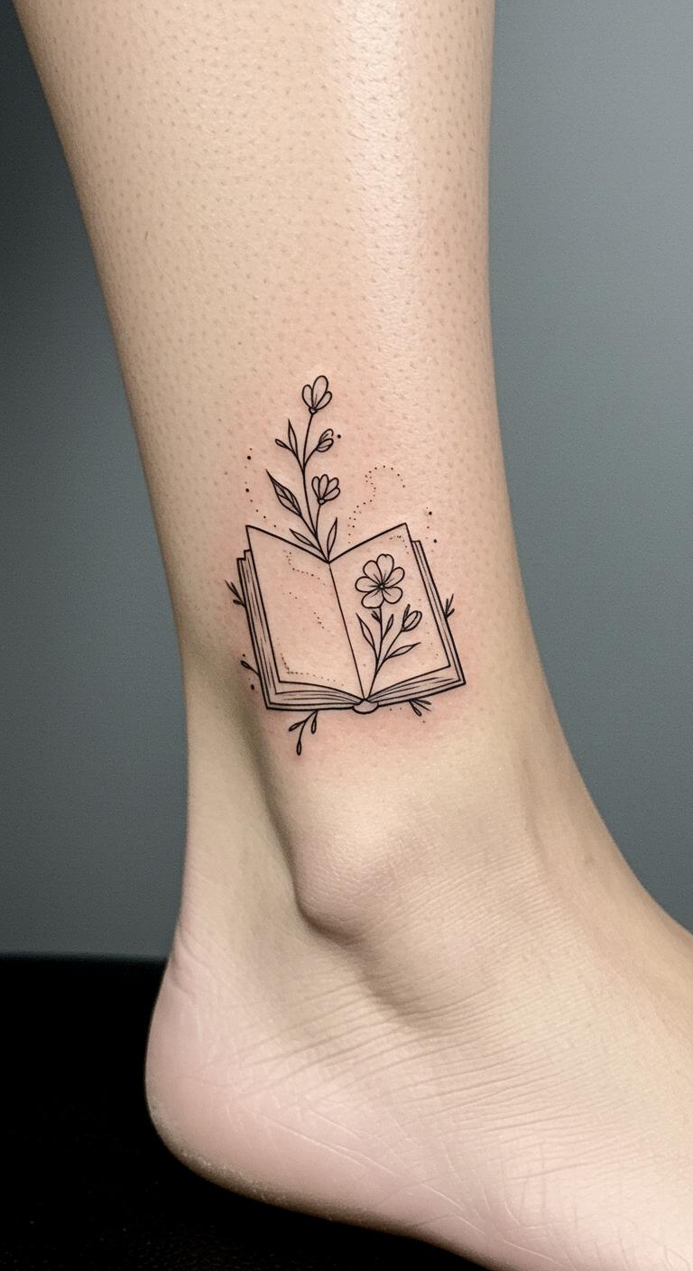Add flowers around a book for softness. It’s feminine and fresh. Practice drawing petals beside the book. Free apps add the flair. This could cost $65 locally. Ankle placement keeps it discreet. Flowers make healing feel quicker. Henna trials are budget-friendly. This ink blooms with your style.