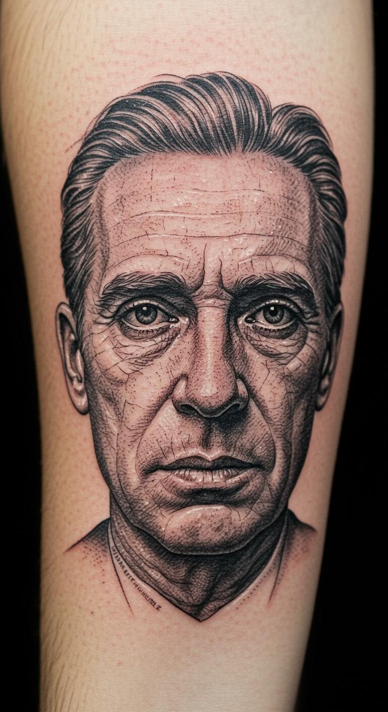 A tiny author face brings realism small. Pick your favorite writer. Sketch a basic face at home. Tools online help scale it down. Around $75 for this detail. Forearm lets you see it often. Small scale speeds up healing. Try a temporary version first. This tattoo honors your heroes.