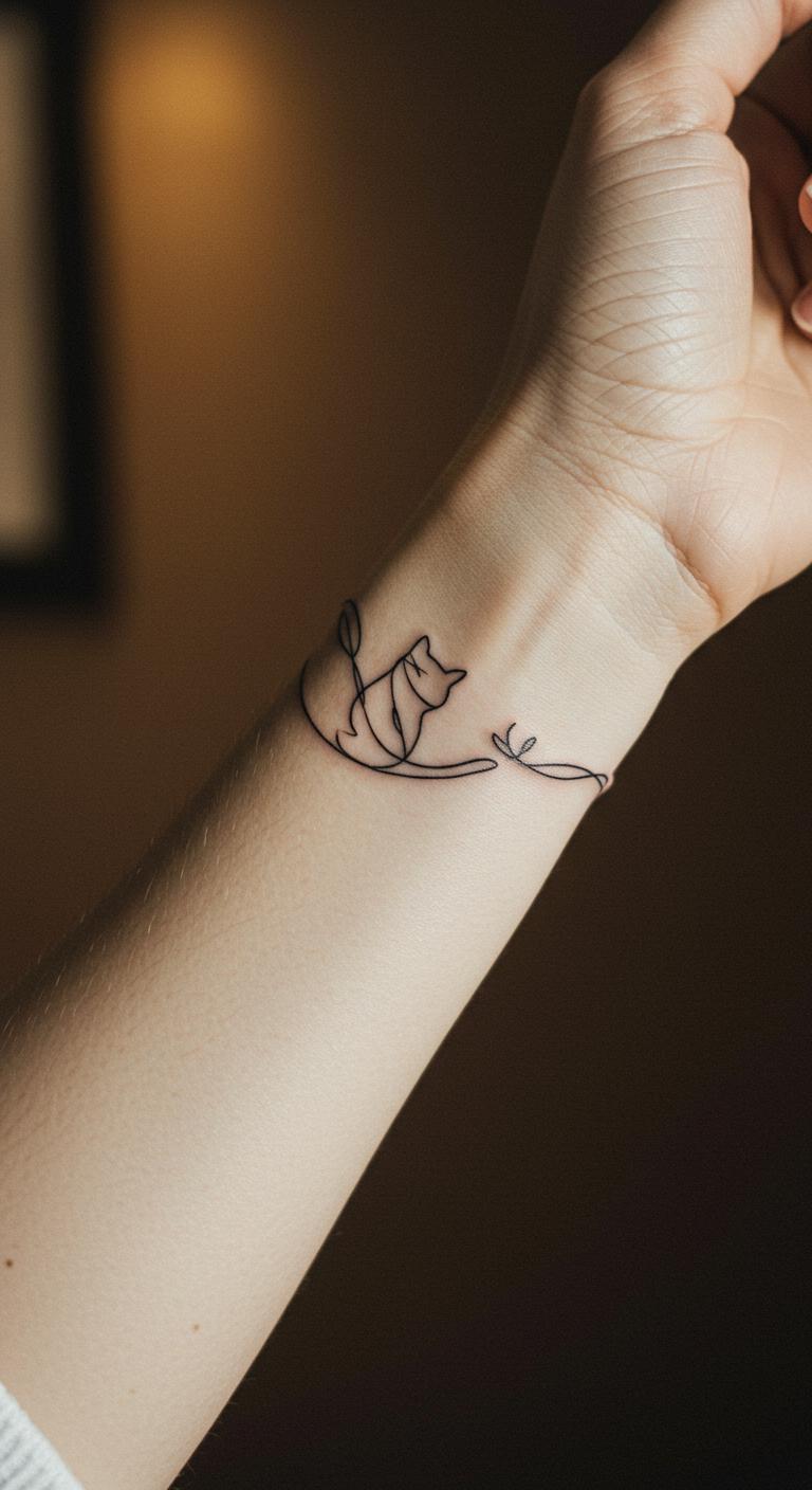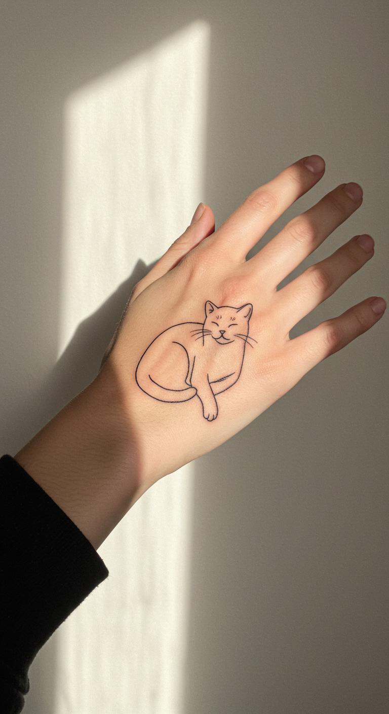 Some wear minimalist cats to remind themselves of emotional resilience and calm. The peaceful nature of cats pairs well with mental health themes like comfort and joy. Choose gentle sleeping or resting poses to emphasize calmness. This thoughtful tattoo can be small but powerful. Adding a personal note or pairing it with your favorite quote makes it meaningful. It’s a simple way to carry positivity daily.