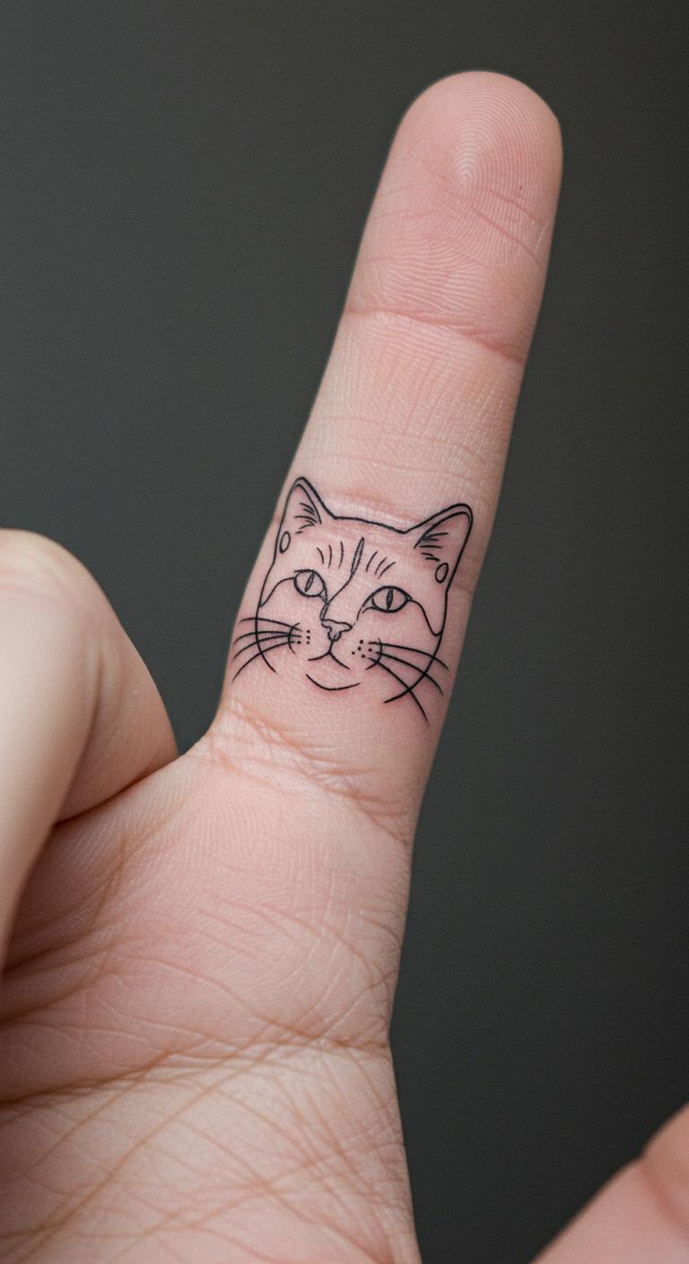 Finger tattoos are a delicate and intimate choice for cat lovers. Minimalist designs shine here because of space limits. Choose simple shapes or a cat’s face to keep details clear. These tattoos are cheap since they’re small and quick to complete. Just remember these areas may require touch-ups over time. Finger tattoos suit people who want a tiny, constant joy reminder without large commitments.