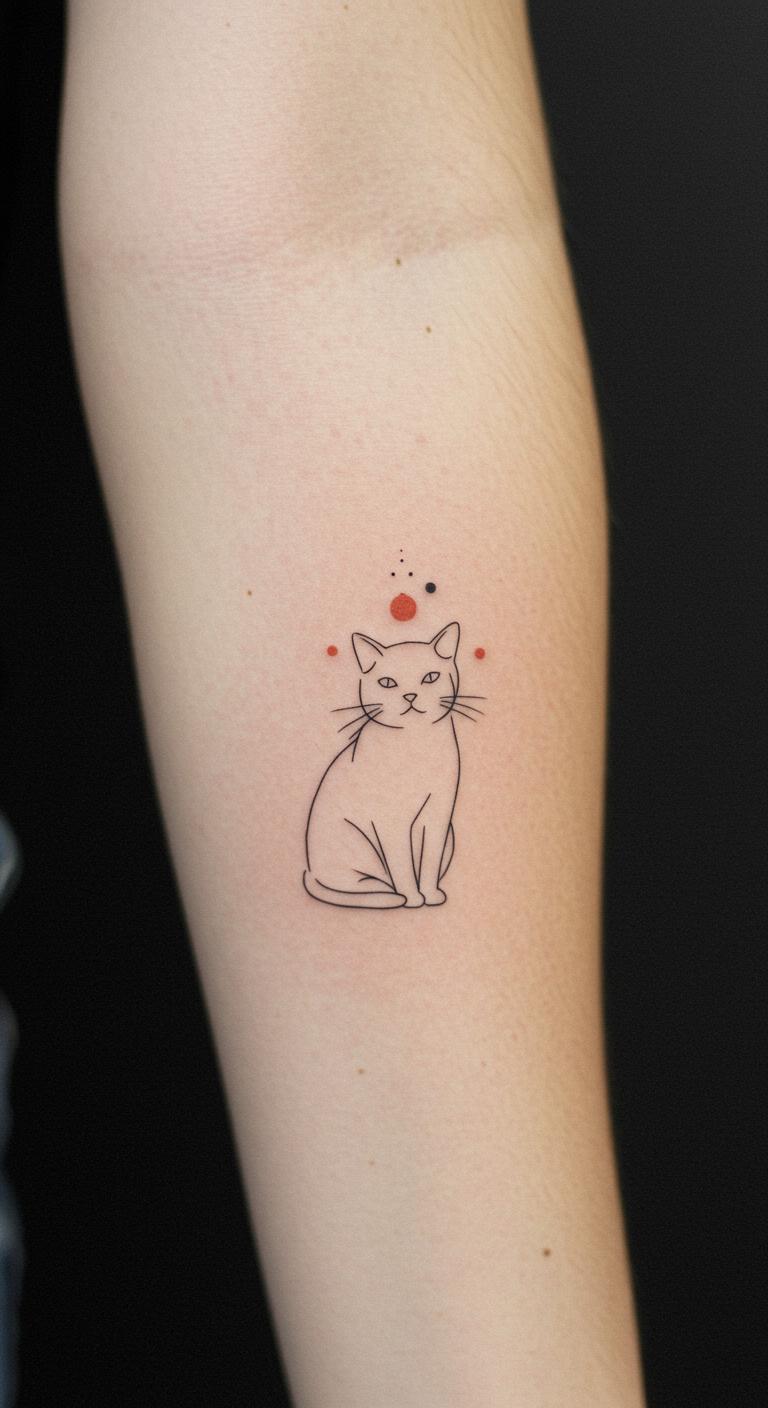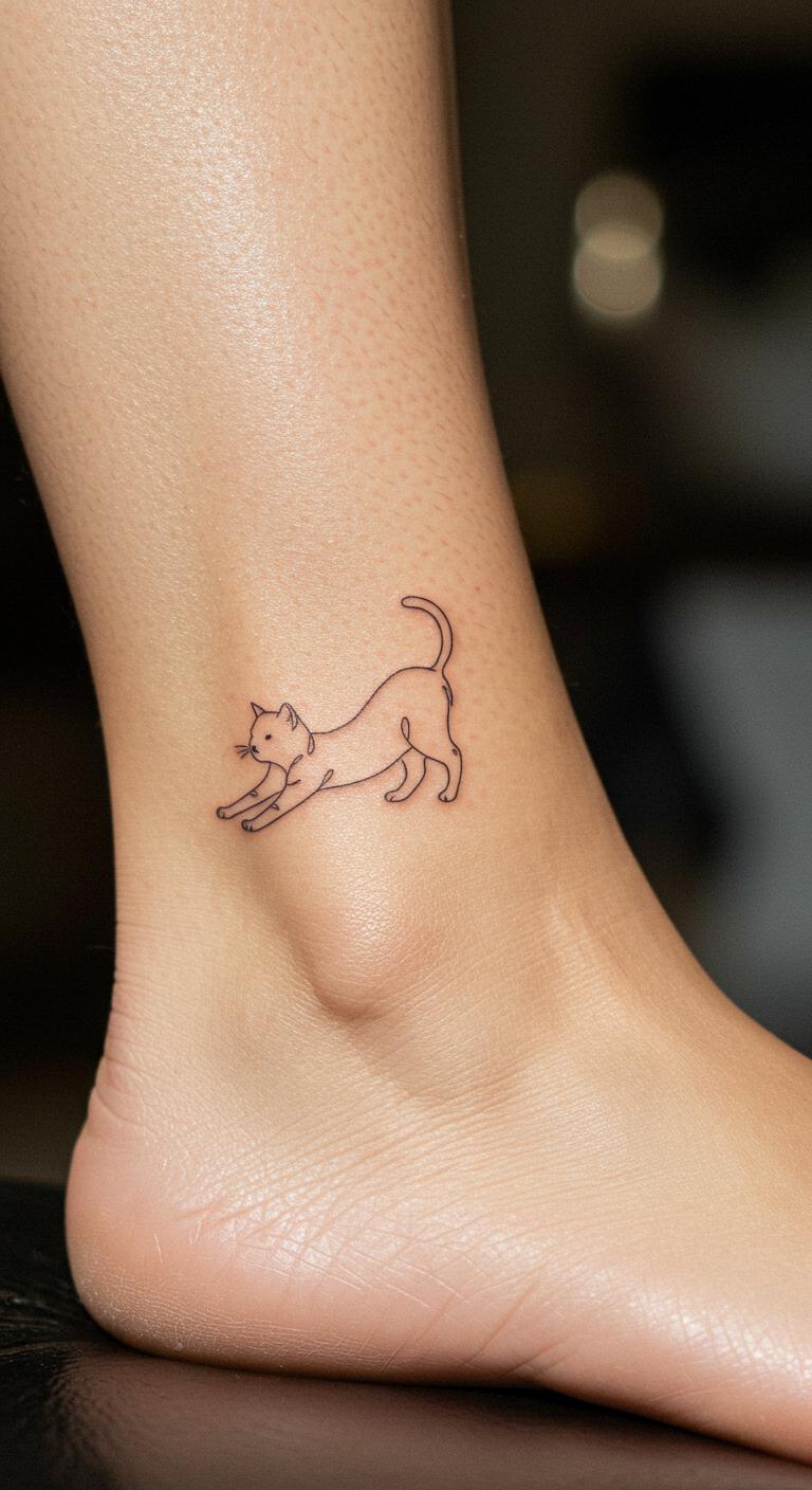 Playful cat poses express energy and fun through minimal strokes. Stretching, pawing, or curling postures add life without complexity. These tattoos work great in small spaces and show personality. Since they’re small, they don’t need much shading, making them easier on your budget. Try sketching your cat mimicking a favorite pose to inspire a unique design. Playful tattoos are perfect for anyone wanting joyful energy in ink.