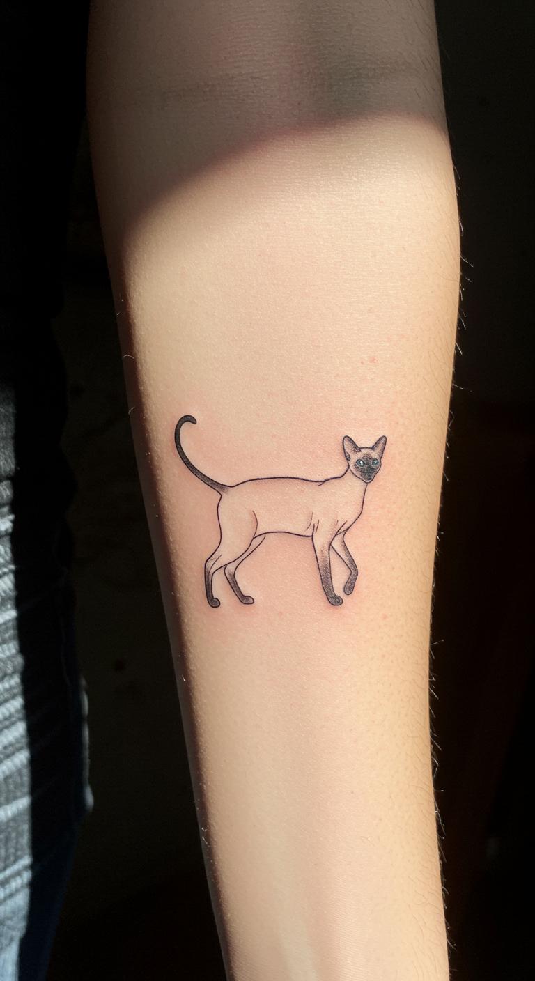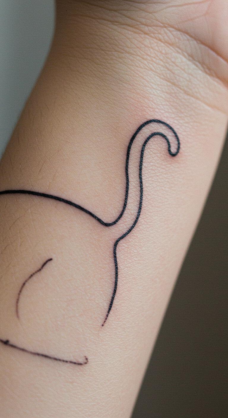 Small features like a curled tail add personality to your tattoo. This detail suggests comfort and feline grace. Since it’s a focused element, it can be added to simple designs without extra cost. Try observing your cat’s tail shapes for inspiration. This tiny touch can make your tattoo uniquely yours while keeping it minimalist.