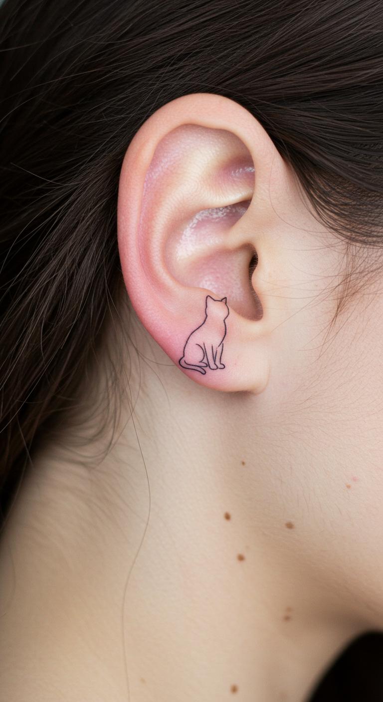 Behind-the-ear tattoos offer subtle presence. Small cat designs look delicate here, providing a private yet special statement. These spots are popular for minimalist tattoos because they don’t require large pieces or colors. They’re budget-friendly due to their size and quick sessions. This location suits first-timers or anyone wanting a hidden reminder of joy and calm.
