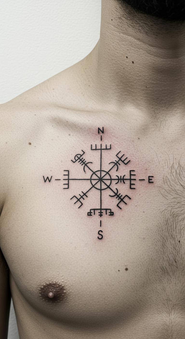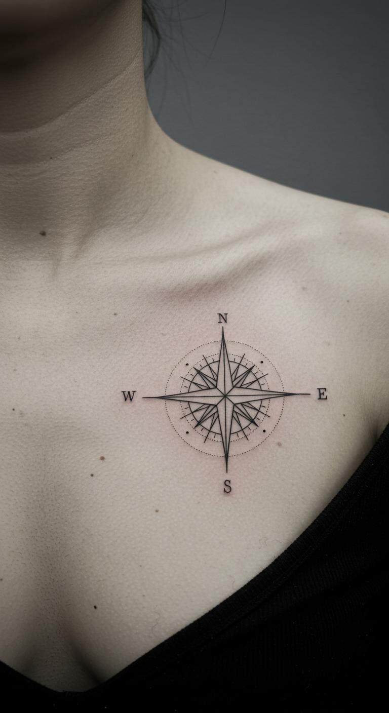Center a compass on your chest for a heart-led path. Basic lines do the trick. Outline it on fabric to visualize. Costs around $100. Look for loyalty programs at studios. Make it symmetrical for balance. Chests need two weeks to settle. Practice with chest drawings in a mirror. It symbolizes inner direction.