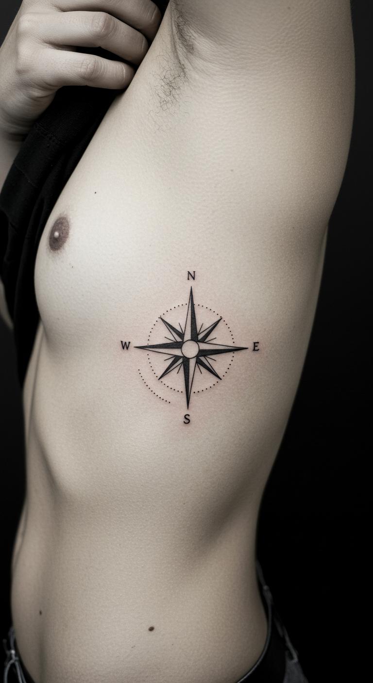 Play with negative space in your compass for clever contrast. Empty areas define the shape. Sketch the negative parts first. Costs around $90. Look for evening sessions. Use space for a hidden message. Ribs take three weeks to heal. Experiment with cutouts on paper. It creates visual interest.