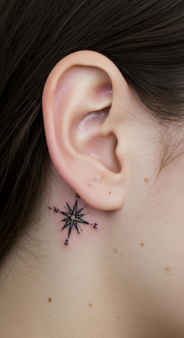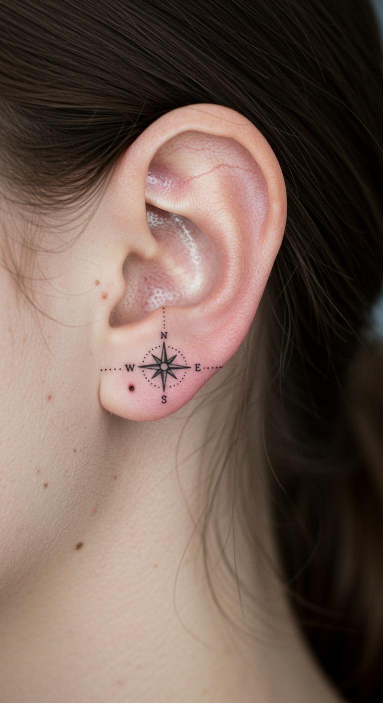 Fit a micro compass on your ear lobe for subtle style. Fine lines work best. Test with earring templates. Expect $40. Watch for quick deals. Make it as small as a stud. Lobes heal in a week. Draw with tiny tools at home. It adds a whisper of adventure.