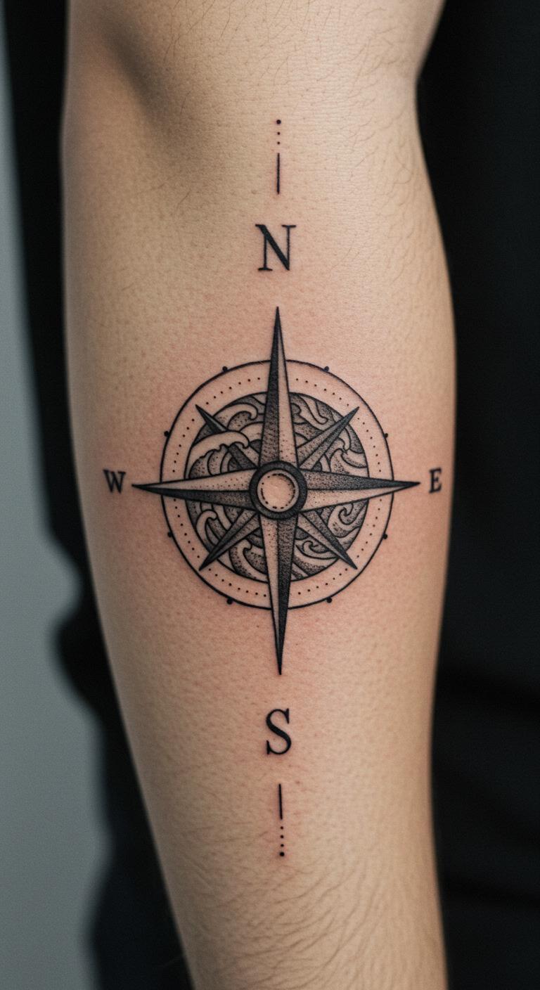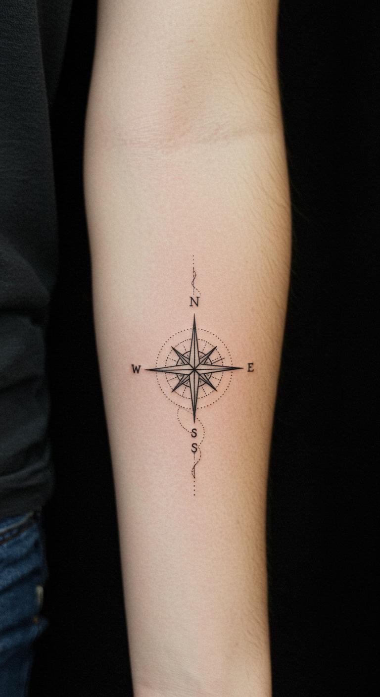 Place a compass on your forearm for easy glances. Straight lines keep it understated. Map it out with a ruler on paper. Expect $70 costs. Check for bundle offers at shops. Add a directional arrow for fun. Forearms heal steadily in two weeks. Sketch with everyday tools at home. It guides you through the day.