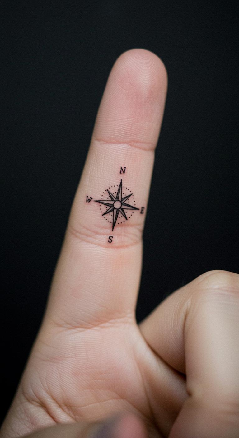 Go tiny on a finger with a compact compass. Just essential lines make it work. Test with a ring-drawn outline first. Prices hover at $30. Look for quickie sessions online. Bold one line for emphasis. Fingers recover in a week. Draw with a thin pencil for practice. This acts as a constant reminder of journeys.