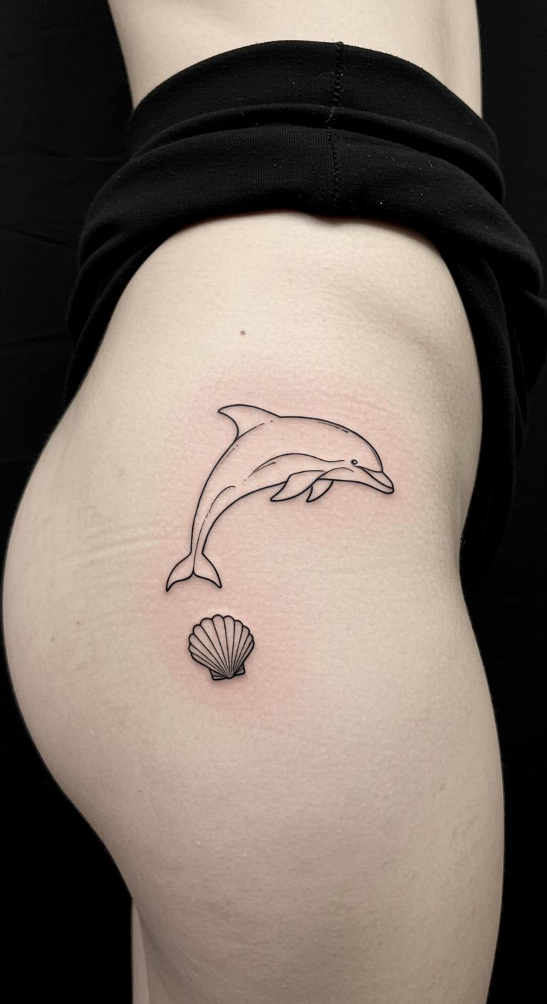 Pair a dolphin with a shell on the hip for a beachy vibe. This design is personal and easy to cover. It’s great for swimwear days. Find hip artists offering deals around $40. Sketch the shell next to the dolphin at home. Paper and a pencil work fine. Use basic ink for durability. Cover with clothing as needed. Many pick this for ocean lovers. Practice by drawing on fabric. Simple tools make it budget-friendly.