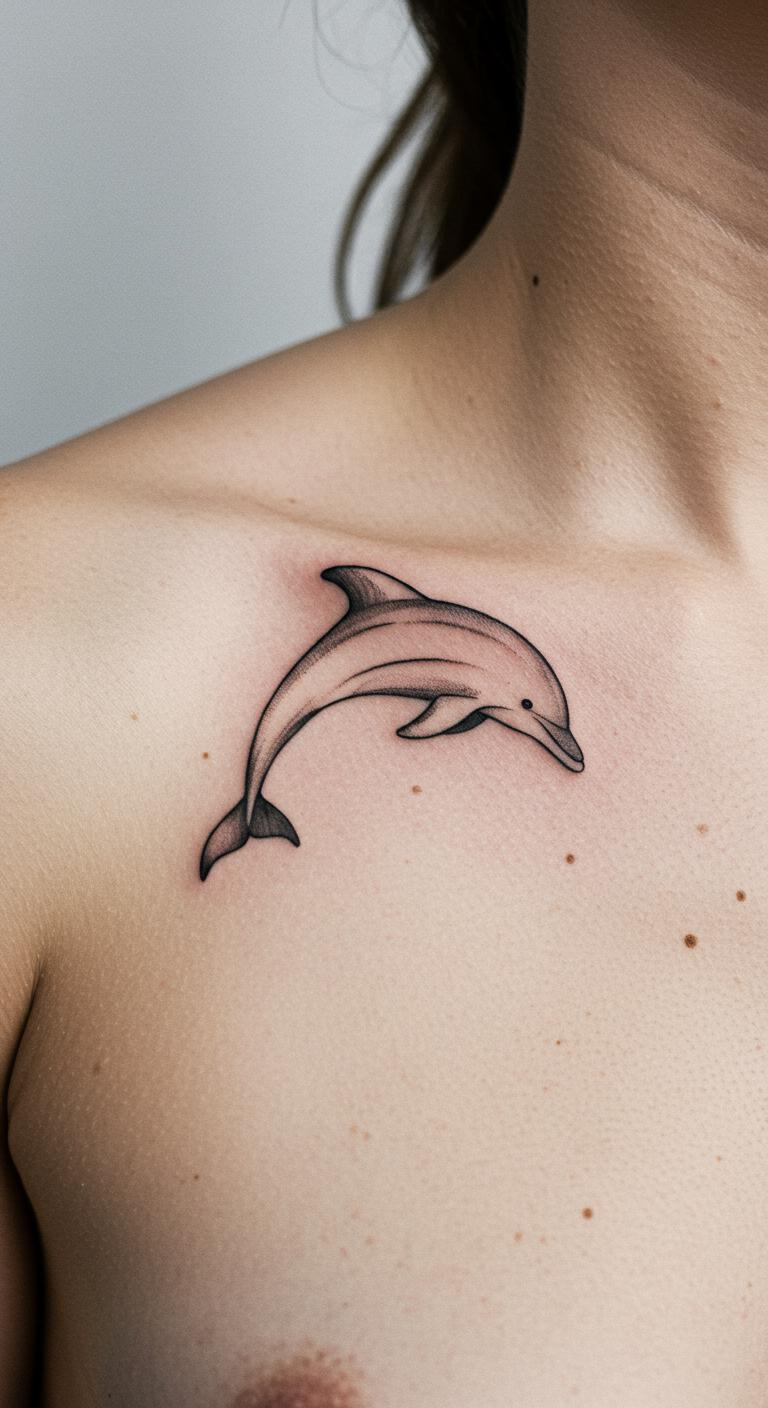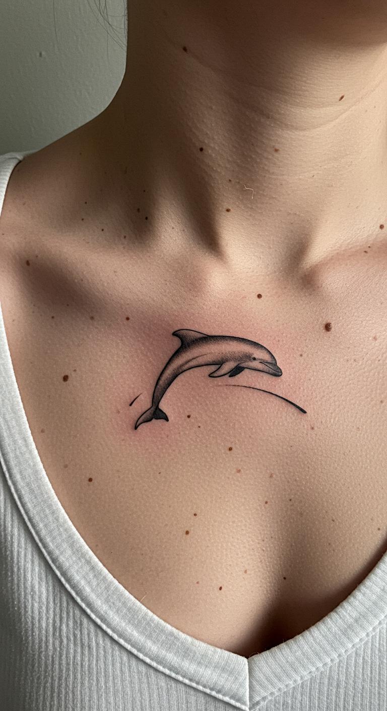 A curved dolphin on the collarbone follows your body’s lines. It’s elegant and easy to display. This area suits formal outfits. Find deals at $40. Sketch the curve at home. Use a marker. Keep it simple. Protect with scarves. Folks choose this style. Practice on paper.