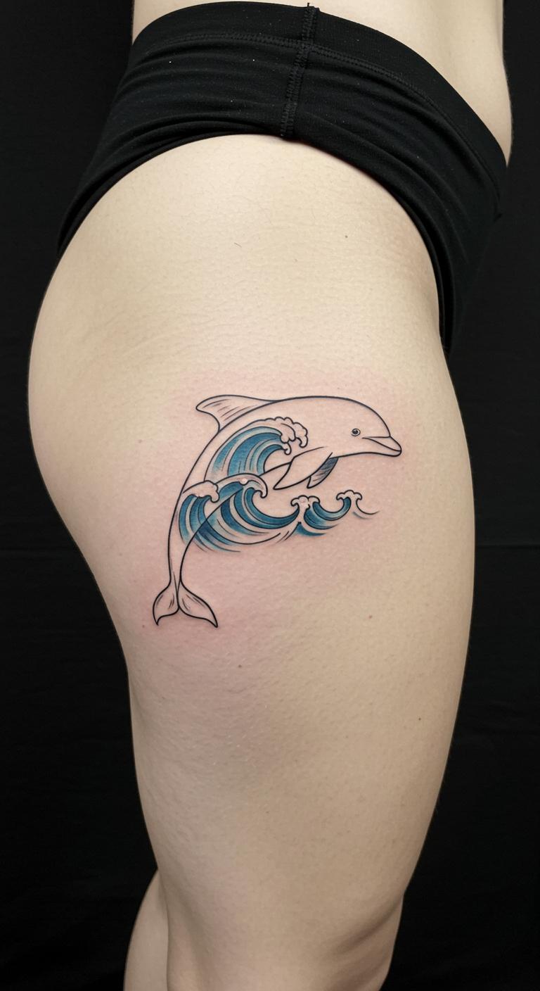 Integrate waves into a dolphin on the thigh for flow. It’s personal and coverable. Search for thigh options at $50. Sketch the integration. Use tools at home. Opt for simple lines. Care basics apply. Many choose for themes. Practice first.
