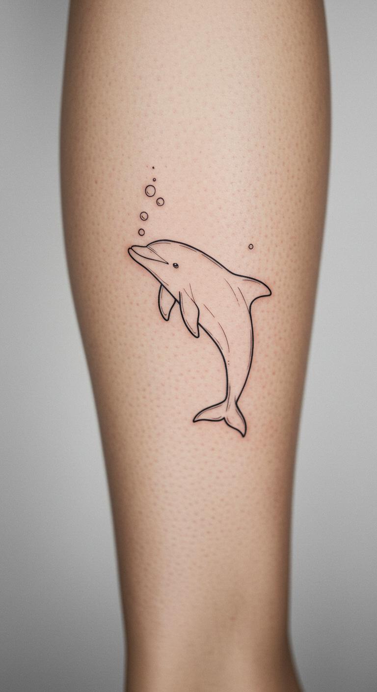 Bubbles around a dolphin on the calf bring in light, airy elements. It’s an easy way to add depth to a basic design. This area suits active people who want something visible during workouts. Find affordable options at community events; costs might be $50 or less. Sketch bubbles as dots around your dolphin drawing. Grab a pen and paper from home to start. Choose muted tones for versatility. Protect it with clothing or basic cream. People pick this for its joyful feel. Experiment by drawing on your leg with markers. These steps make the process simple and cheap. Care involves just gentle washing.