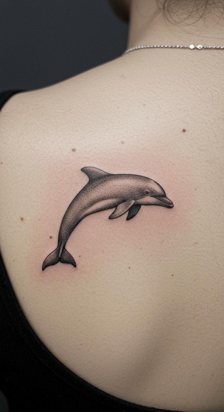 Add light shading to a dolphin on the shoulder blade for texture. This keeps the design simple yet interesting. It’s perfect for showing off in tanks or hiding under shirts. Find shoulder artists at affordable rates; around $60 fits. Draw shaded areas on your sketch to visualize. Use a soft pencil from your drawer. Go with basic black for ease. Care for it with daily moisturizer. Many select this for its elegant look. Experiment with shading techniques on paper first. These actions make it accessible and fun.