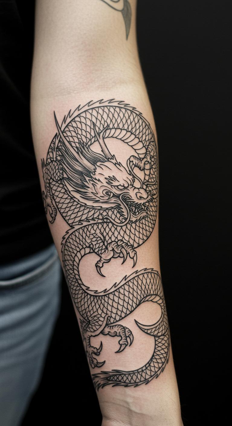 Your forearm offers space for a resilience-themed dragon that tells your story. Think of straight lines creating a strong, flowing shape that flexes with you. This area shows off your ink during activities. Sketch ideas on your arm with a marker first; it’s free and fun. DIY tip: Use a phone app to overlay designs and adjust sizes. Go for a budget artist in your town; prices start at $100 for this size. Stick to black ink for simplicity and lower costs. Real example: Many folks add this after tough times, like a job change. It serves as a daily motivator. Cover it with sleeves if needed. Healing takes a few weeks with just soap and water care. Ultimately, this design helps you feel empowered in sleeves or short sleeves.