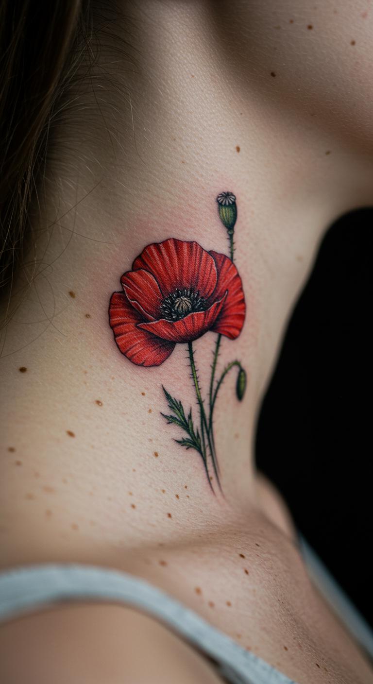 Go micro with poppies. They fit anywhere. Zoom in on photos for ideas. Do it on your phone. Find detail artists at budget spots. Look for hourly rates. Make them palm-sized. Around $55. Use fine-tip markers for trials. Draw and erase. Hide on neck if needed.
