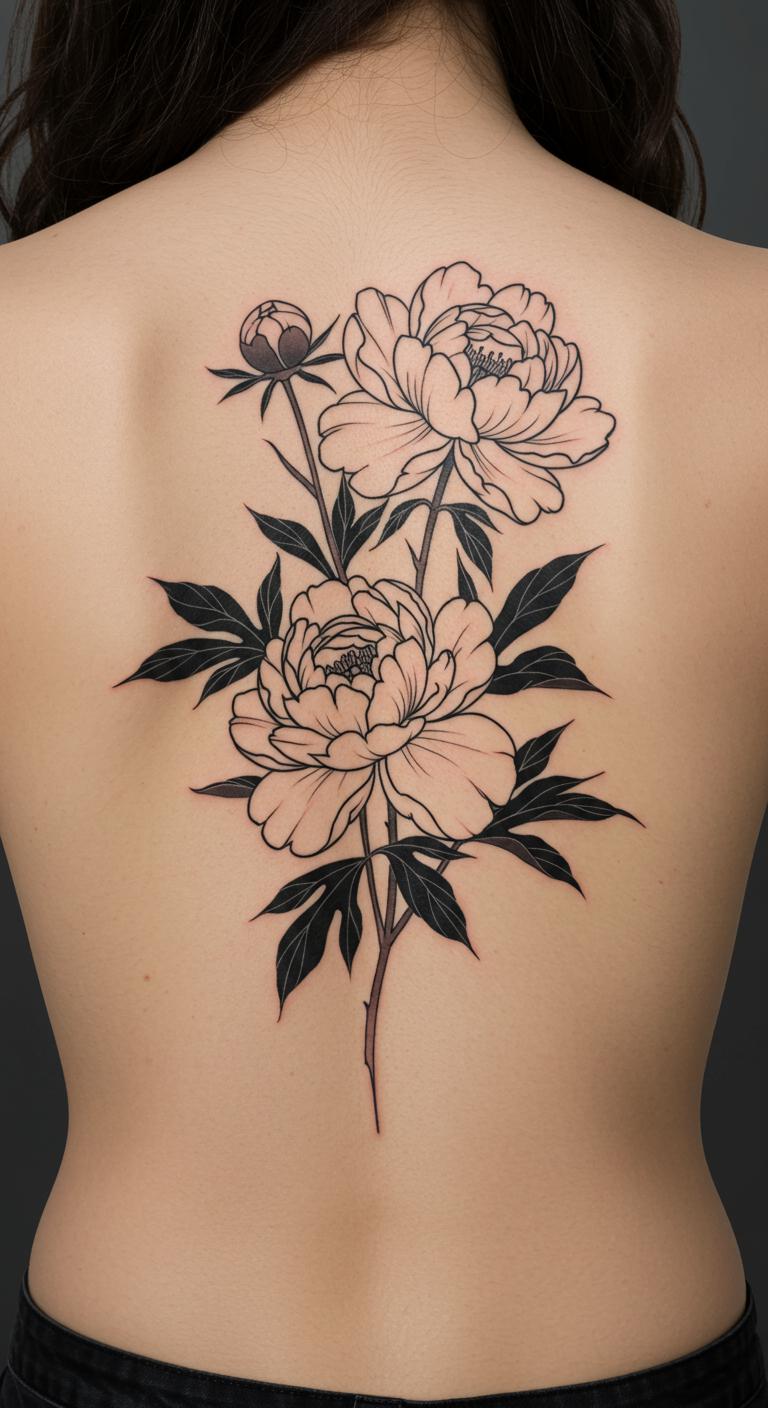 Put peonies on your lower back. It’s versatile. Trace on a mirror. Use lipstick. Look for back specialists with low fees. They have options. Make it compact. Expect $75. Try with washable inks. Draw and rinse. Cover with clothing easily.