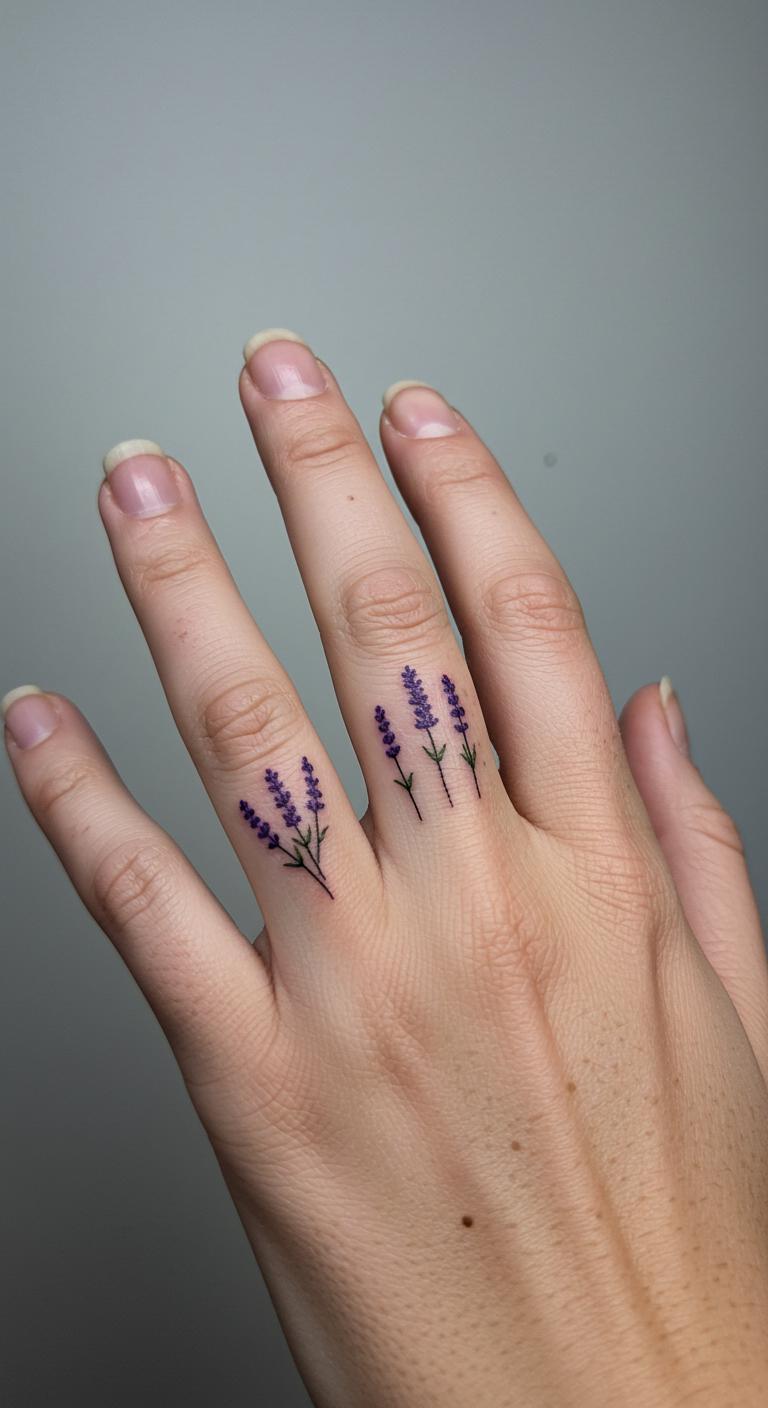 Group lavenders on your fingers. It’s discreet and cool. Doodle on your hand with pen. Quick and free. Look for finger specialists at low-cost places. Many do sets. Make them micro-sized. Around $30 per finger. Use nail art stickers as practice. Peel off when done. Wear rings over them for style. Tip: Wash hands gently to protect ink.