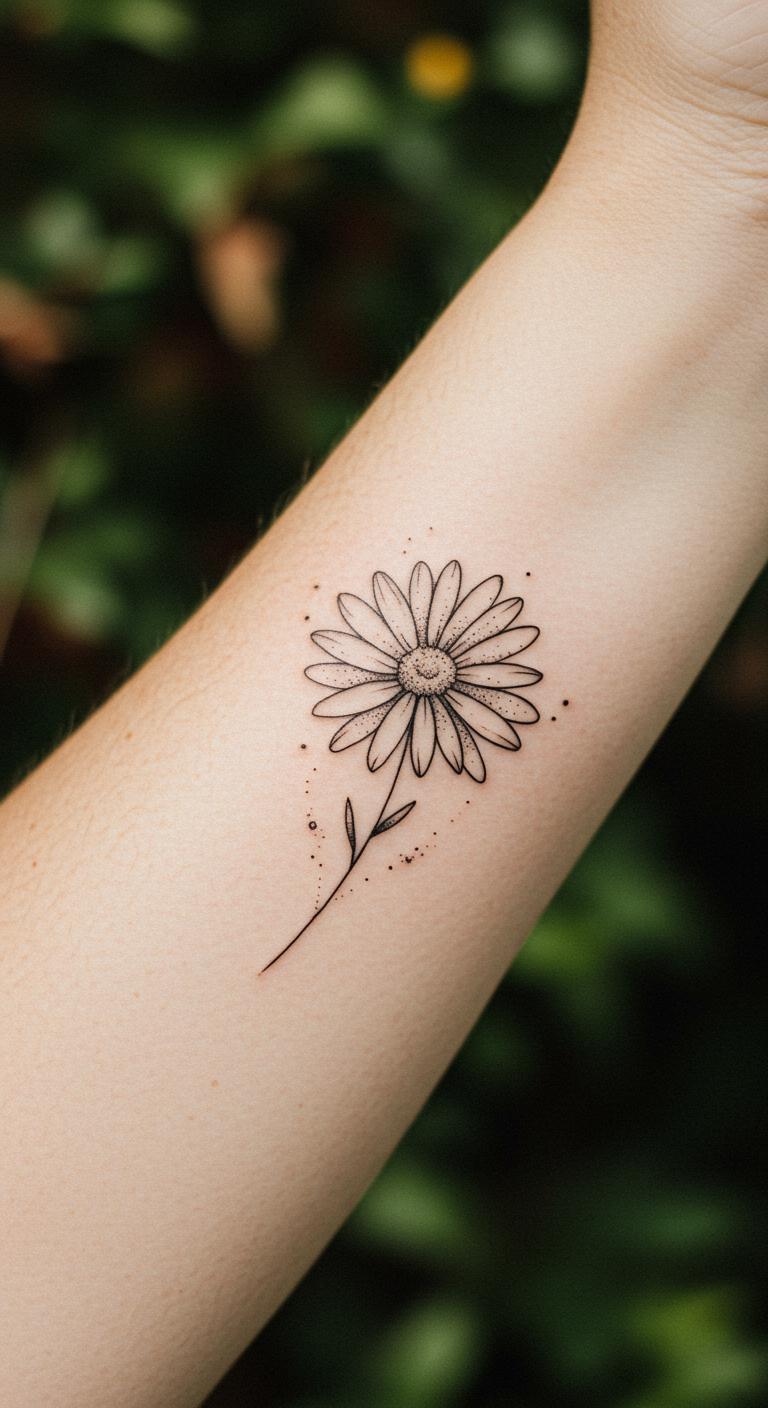 The daisy is a timeless symbol of innocence and joy. A minimalist daisy tattoo uses clean lines and space to keep the design light and airy. Choose a small size to keep costs manageable. You can even sketch a basic daisy at home and bring it to an artist for refinement. This design works well on wrists or ankles, easy to show off or hide. No shading is needed—just a steady hand and fine needle work for subtle charm.