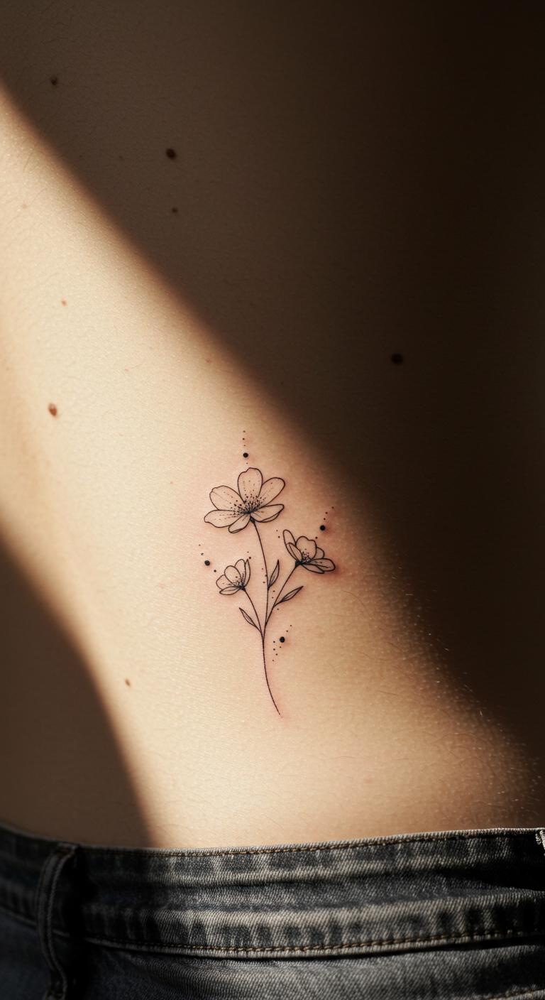 Once out of fashion, lower back tattoos are back but with minimalist flowers instead of bold tribal motifs. They offer a discreet canvas for personal floral art. Choose abstract or stylized blooms for easy, quick tattoo sessions. This placement suits people who want to keep tattoos hidden often but show them off sometimes.