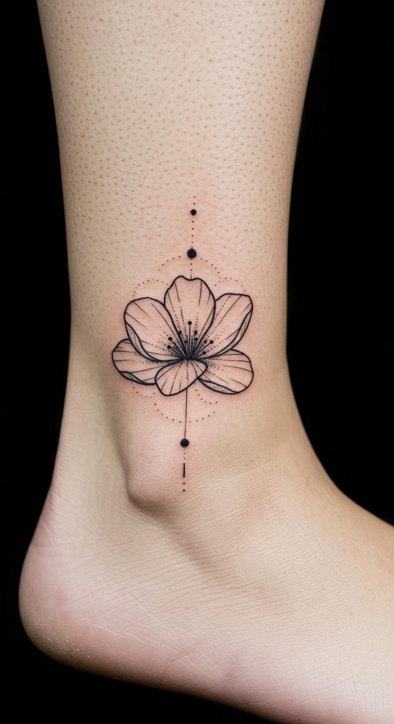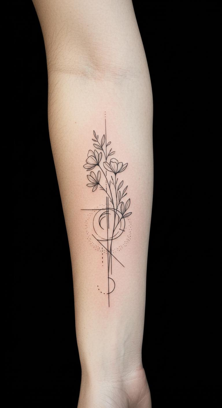 Combining flowers with geometric shapes adds a modern twist. Think along the lines of a rose enclosed in a hexagon or petals aligning with triangles. This design stays simple but feels fresh. Start with clear geometric templates and overlay floral sketches. This mix is perfect for those who want a minimalist but unique style. The clean shapes keep tattooing quick and budget-friendly.