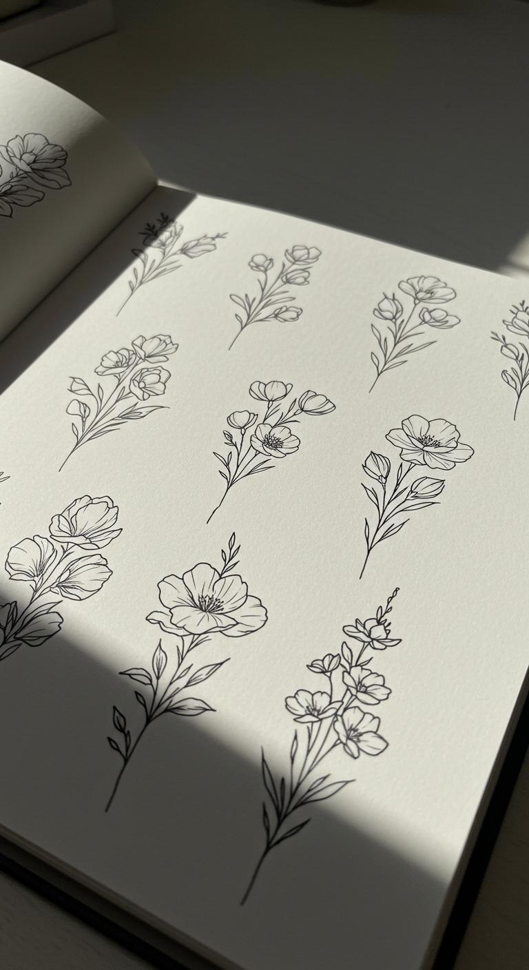 Dotwork uses tiny dots to create shading and depth while maintaining a minimalist feel. This technique works well on petals or leaves, adding subtle detail without overwhelming the design. Dotwork can be DIY-planned by adjusting your submitted sketches to include dot shading. This style holds well over time and remains budget-friendly.