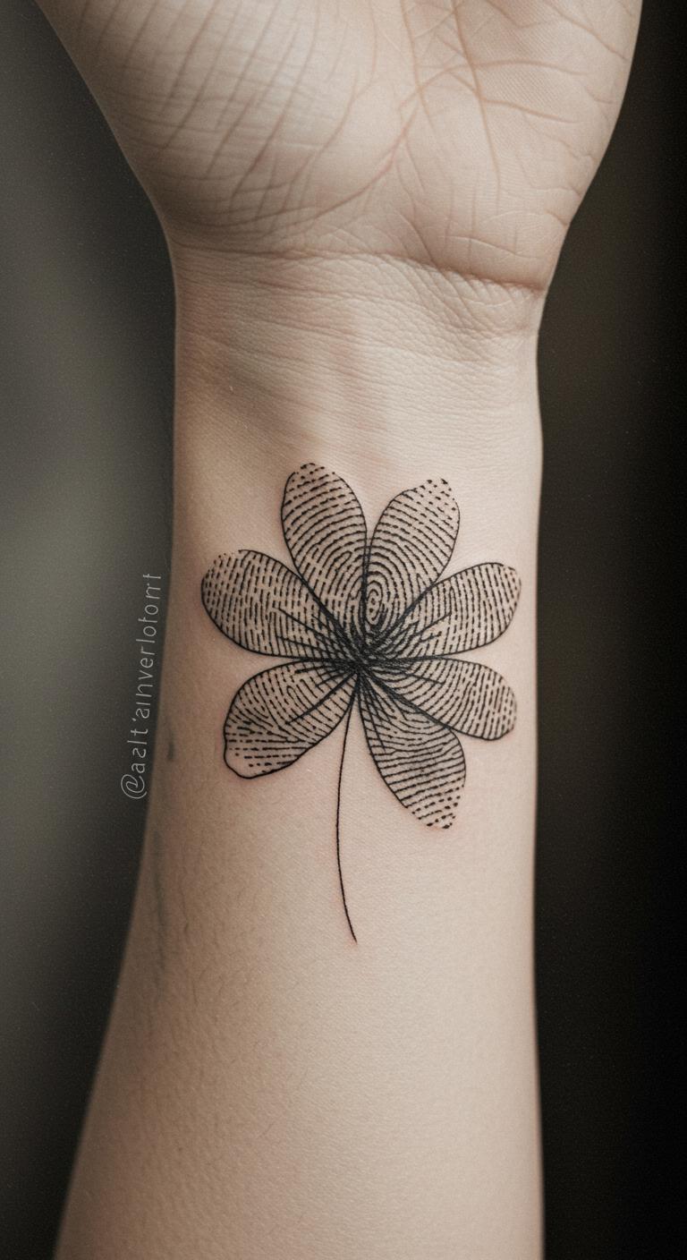 Incorporate a loved one’s fingerprint into a flower’s petals or stem for a personal memorial tattoo. This small design fits well in minimalist styles and holds emotional weight. Collect a clear fingerprint and ask your artist to translate it into linework. It’s a heartfelt way to keep memories close.
